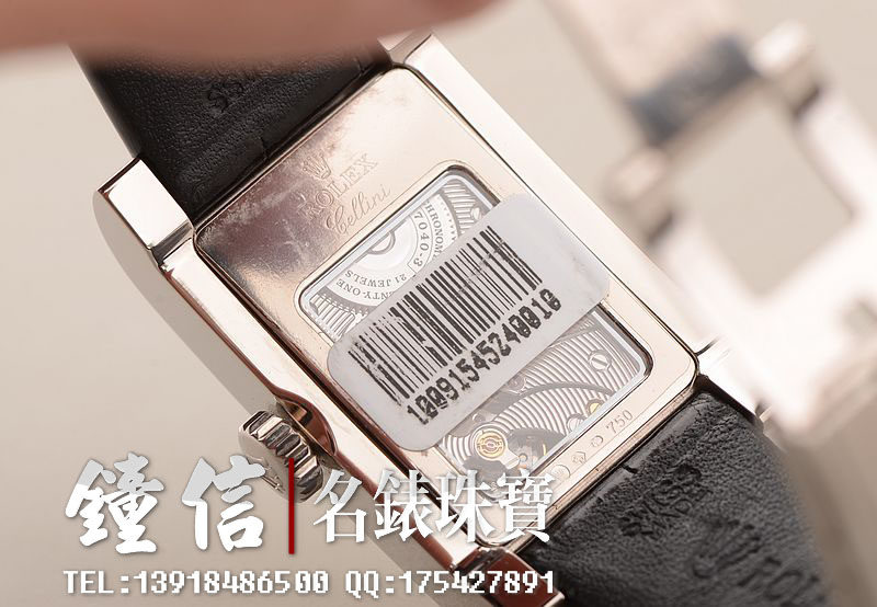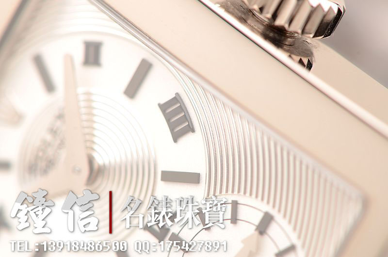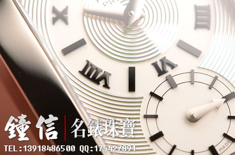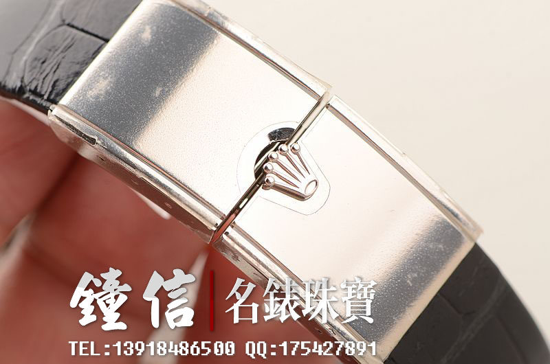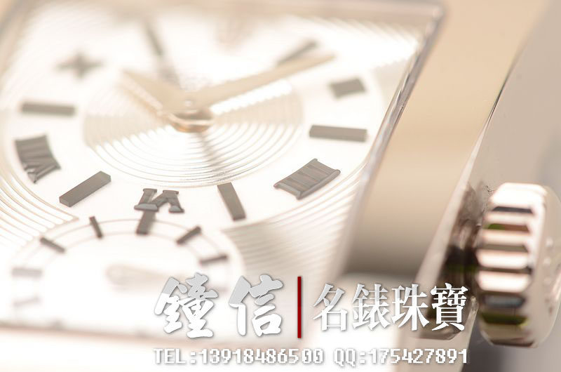18K白金表壳及折叠式表扣,圣伯纳狗头印记。原厂黑色鳄鱼皮表带成色全新。蓝宝石水晶镜面及底盖,立体白金镀银雕刻表盘,小三针设计,白金指针,黑色罗马字刻度,口径45MM*29MM*10MM。相当于圆表40MM左右大小。防水50M。