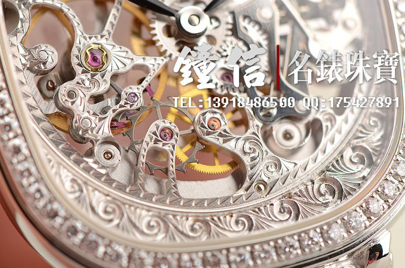 18K白金镂空雕花机械镶钻手上链腕表
