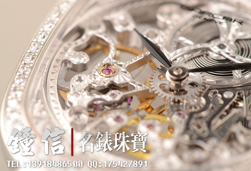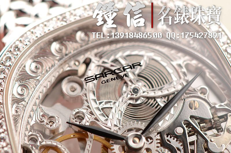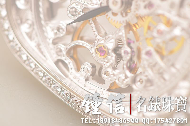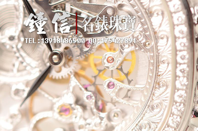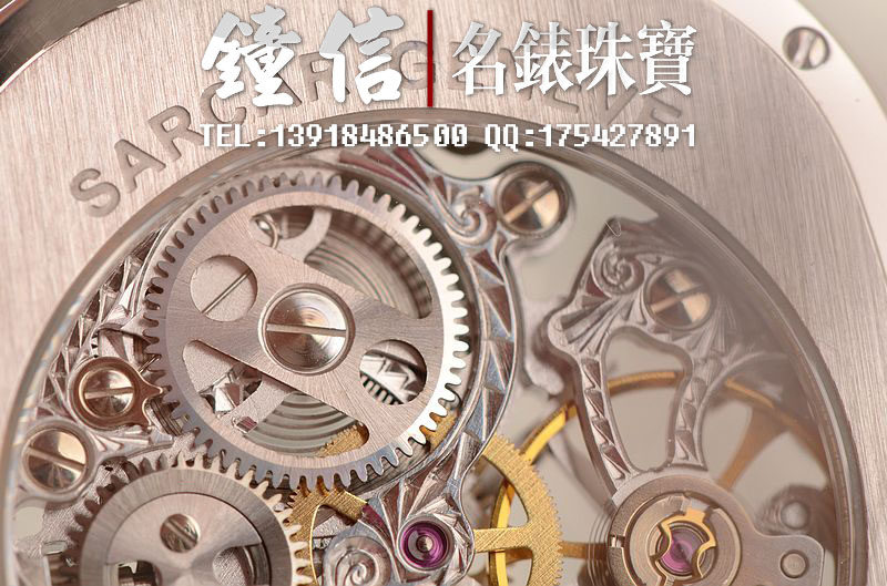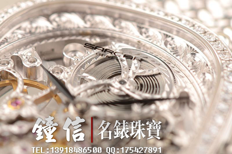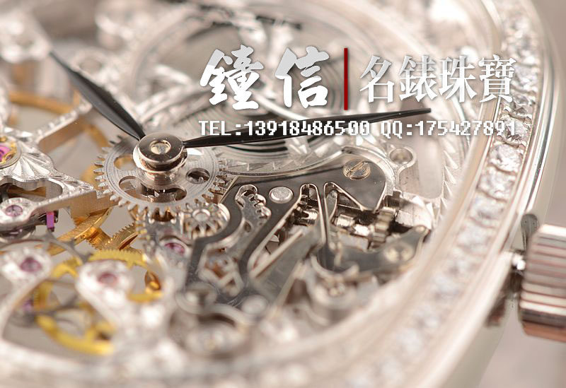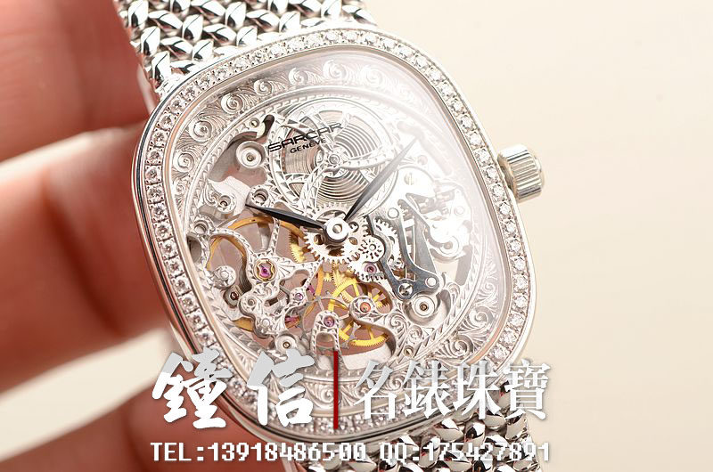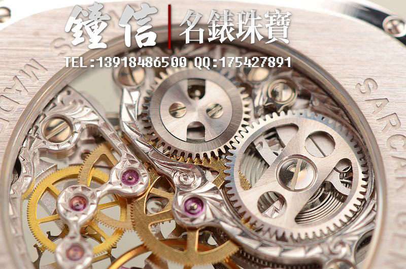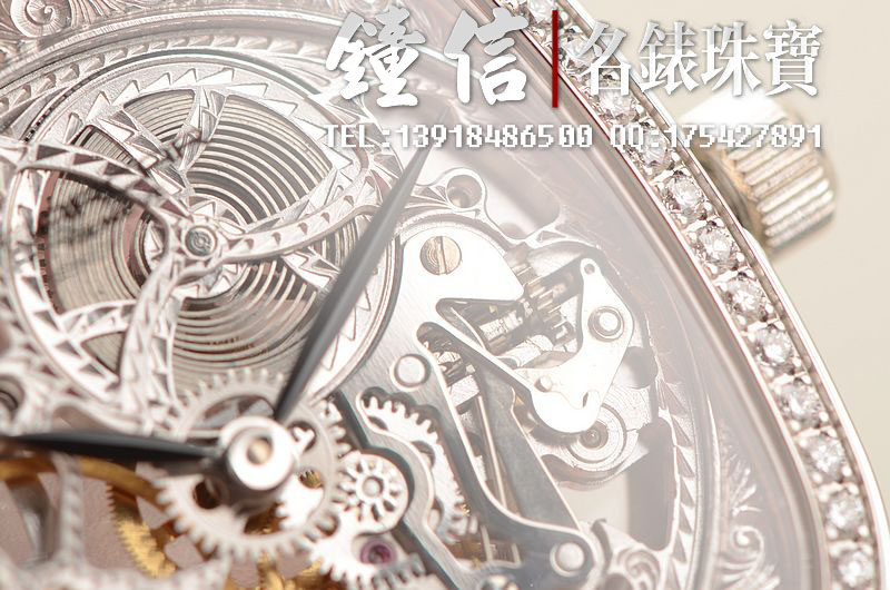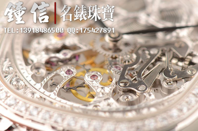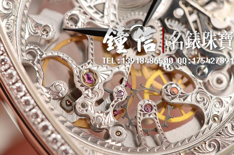 豪门世家顶级人手雕花机芯,手上链,倒角抛光修饰,摆频21600,走时状态极佳。