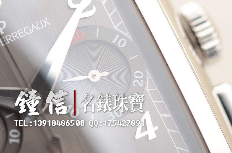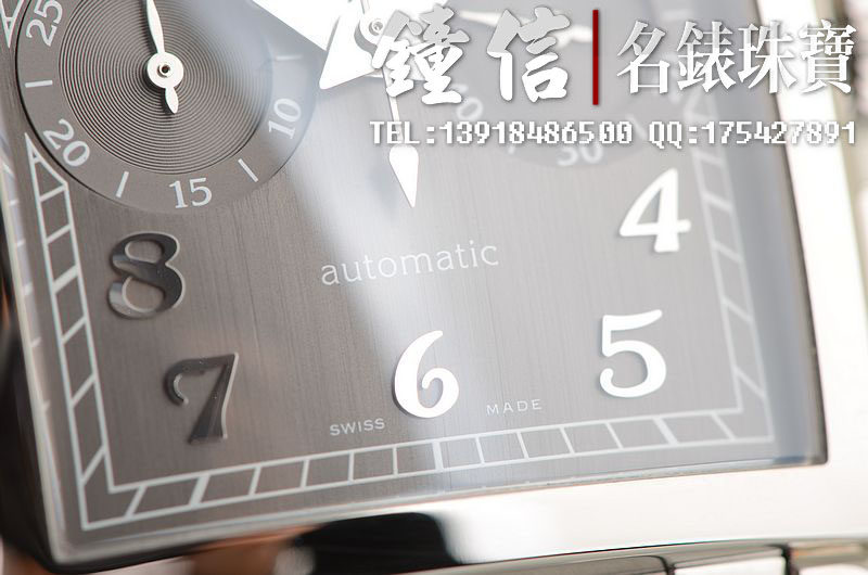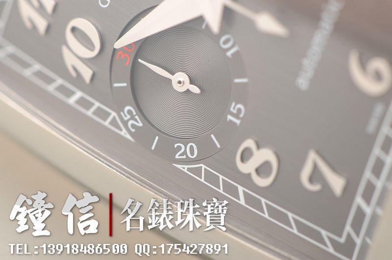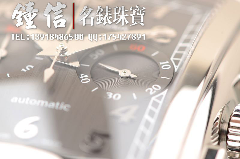 精钢表壳及链带,双向按压式折叠表扣。蓝宝石水晶镜面及底盖,立体银灰色拉丝面盘,银色立体阿拉伯数字刻度,3点位独立小秒针,9点位30分钟计时。口径52MM*36MM*13.27MM。相当于圆表43MM左右大小。防水30M。