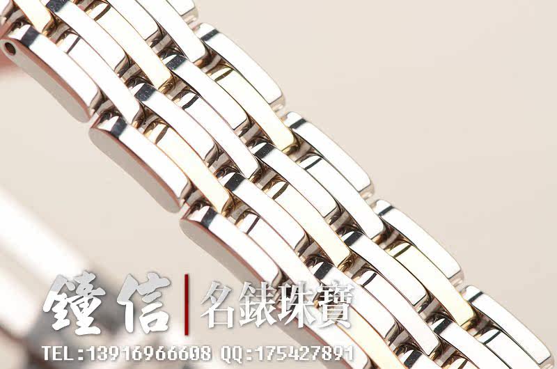 18K黄金及钢表壳及链带。折叠式表扣。蓝宝石水晶镜面,表框及刻度镶嵌原厂天然美钻。立体银白色表盘,黄金时分针。口径22MM*5.6MM。防水30M。