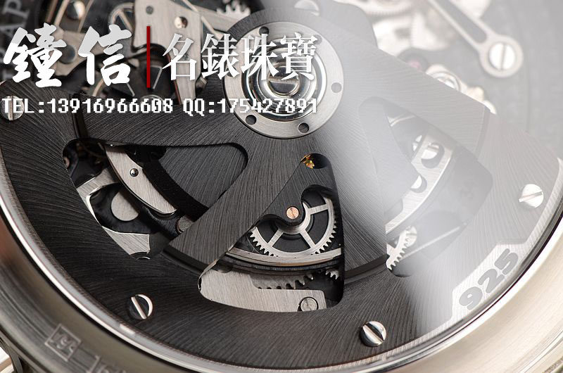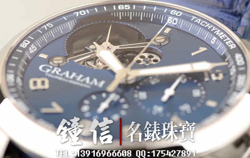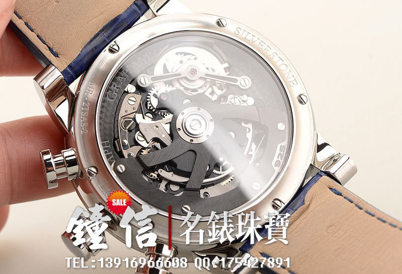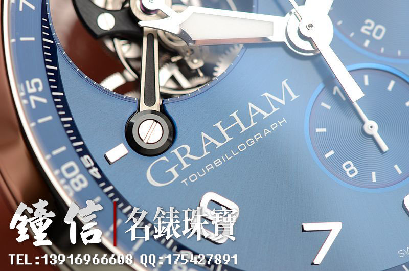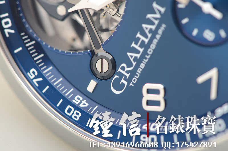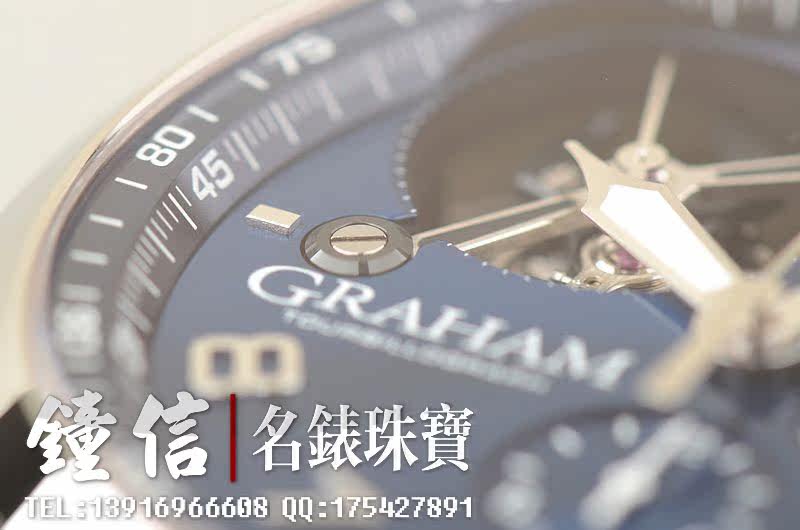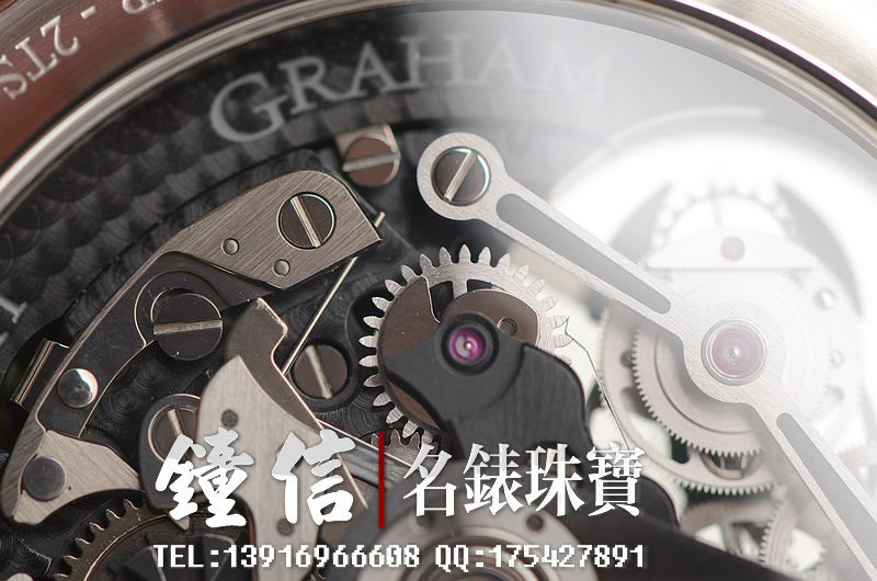 Graham自产陀飞轮计时机芯,自动机械,34钻,摆频28800,机芯夹板锻黑处理。走时状态极佳。