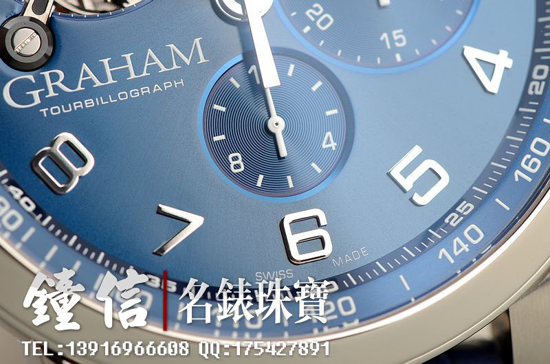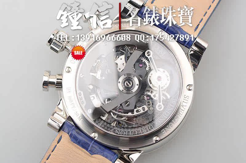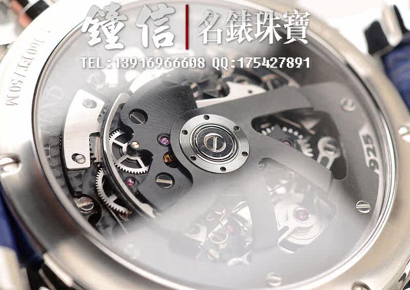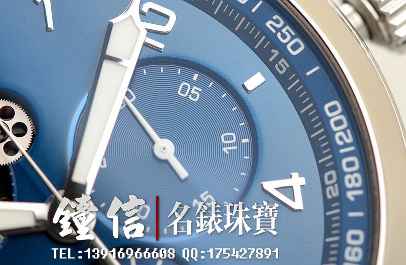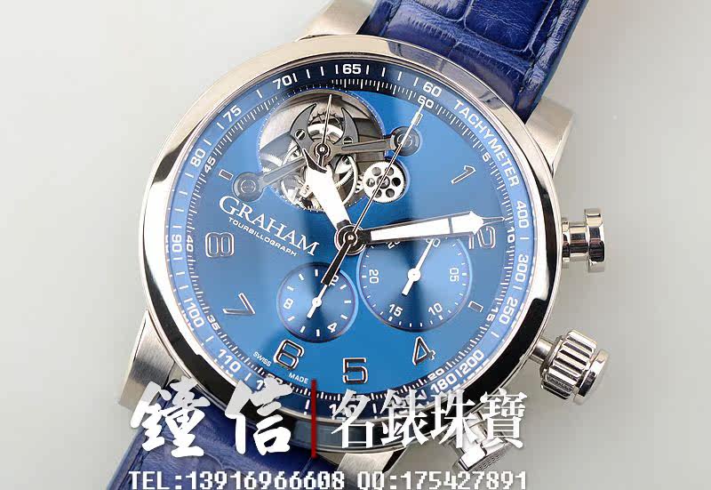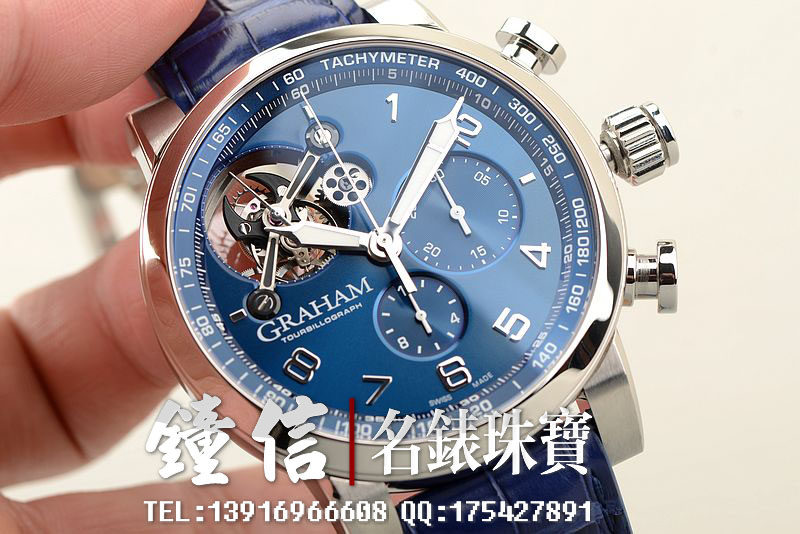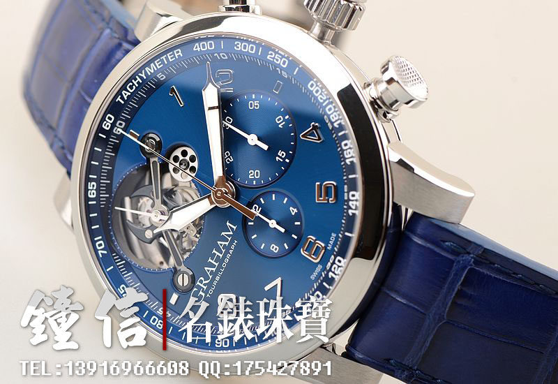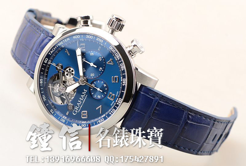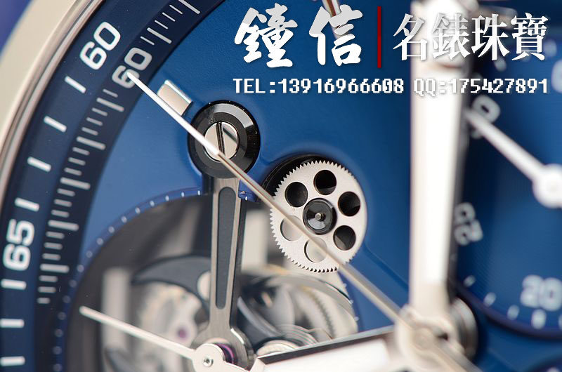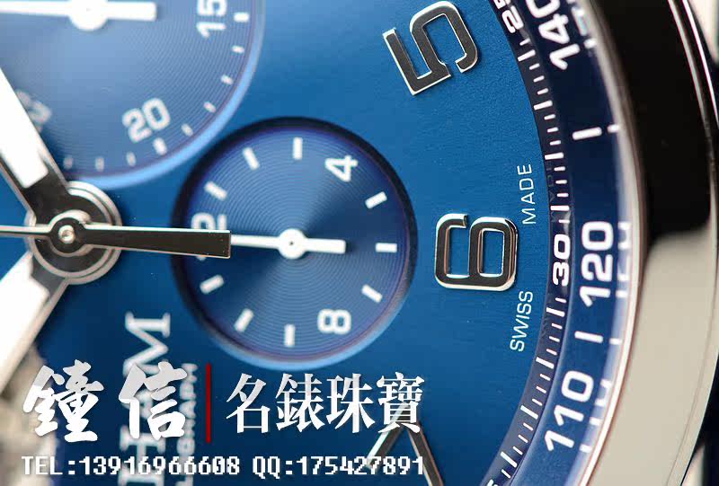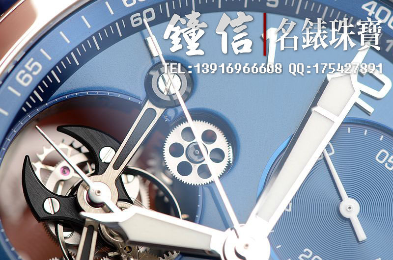 精钢表壳及折叠表扣,蓝宝石水晶镜面及底盖,原厂蓝色鳄鱼皮表带成色很新。立体蓝色计时表盘,夜光时分针,10点位一分钟飞行陀飞轮,6点位12小时计时,3点位30分钟计时。口径48MM*16MM,防水50M。