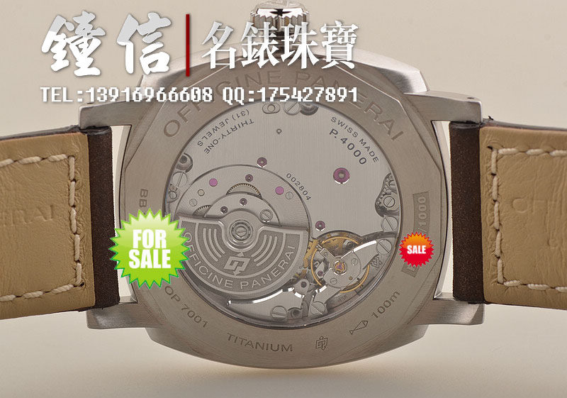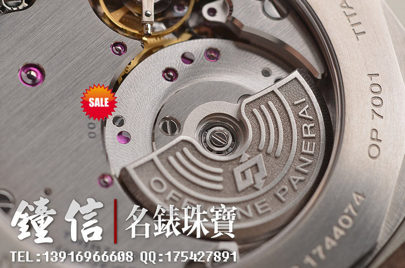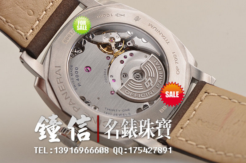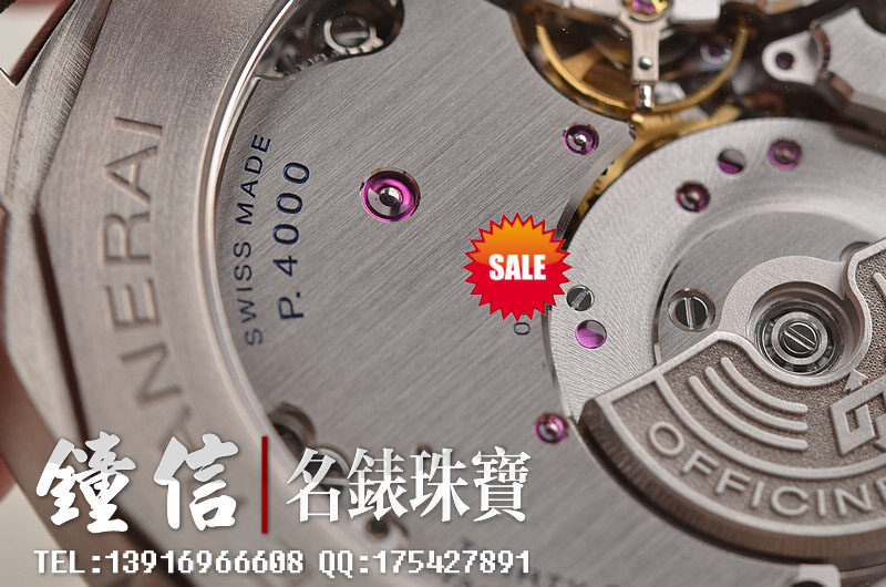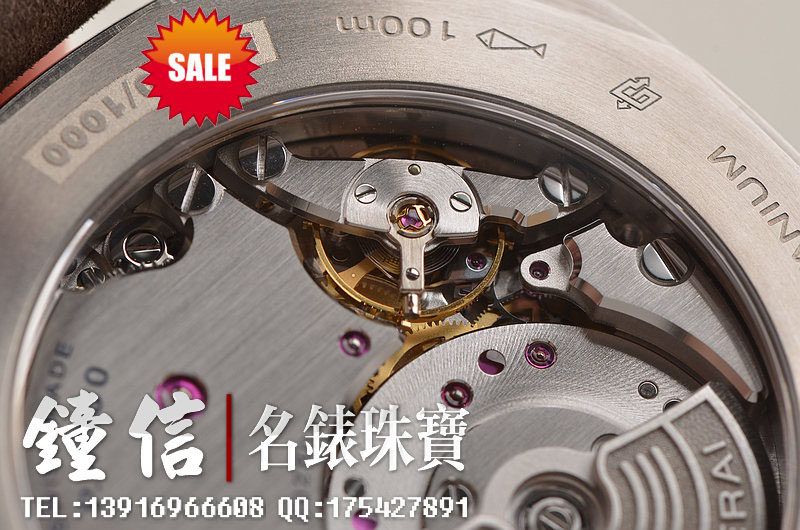 沛纳海自产新款CAL.P4000型机芯,自动机械,极其精致日内瓦条纹打磨,倒角抛光修饰。由203个零件组成,双发条盒,31钻,摆频28800,KIF避震器,动力储存约72小时。走时状态极佳。