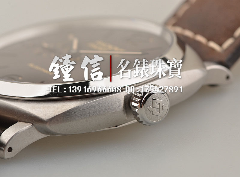 钛金属表壳及表扣轻盈舒适,原厂深棕色水牛皮表带。由刚玉制成的蓝宝石水晶镜面及底盖,立体棕色三明治夜光表盘,夜光刻度及指针,9点位独立小秒针,口径45MM*11MM薄款厚度,舒适贴手。旋入式防水表冠。防水100M。