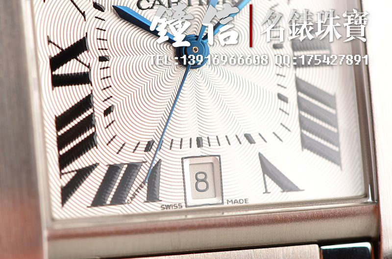 精钢表壳及链带,折叠式表扣。蓝宝石水晶镜面,立体白色太阳纹表盘,黑色罗马字刻度,蓝钢指针,6点位日历显示功能。口径32MM*28MM*7.45MM,相当于圆表32MM左右大小。蓝宝石表冠。防水30M。