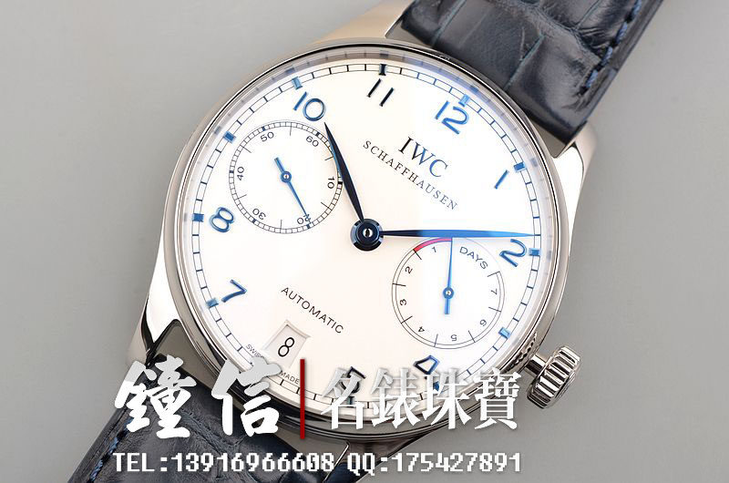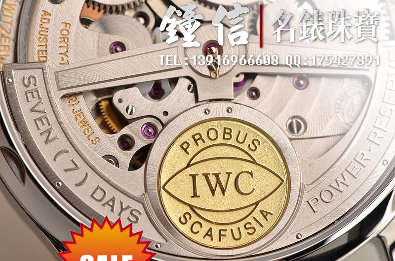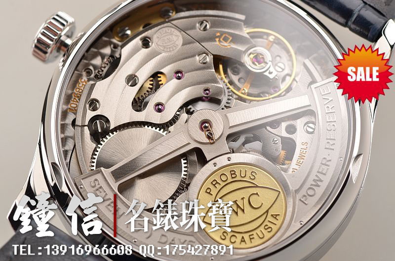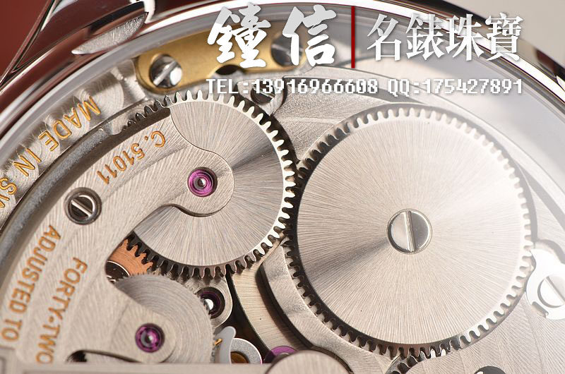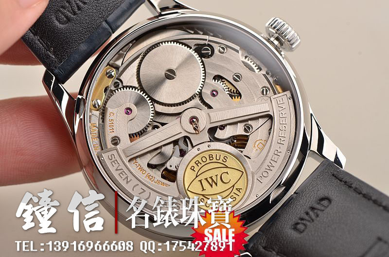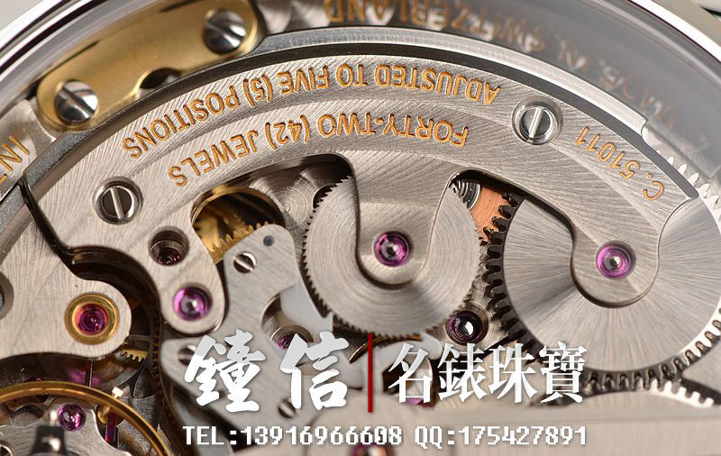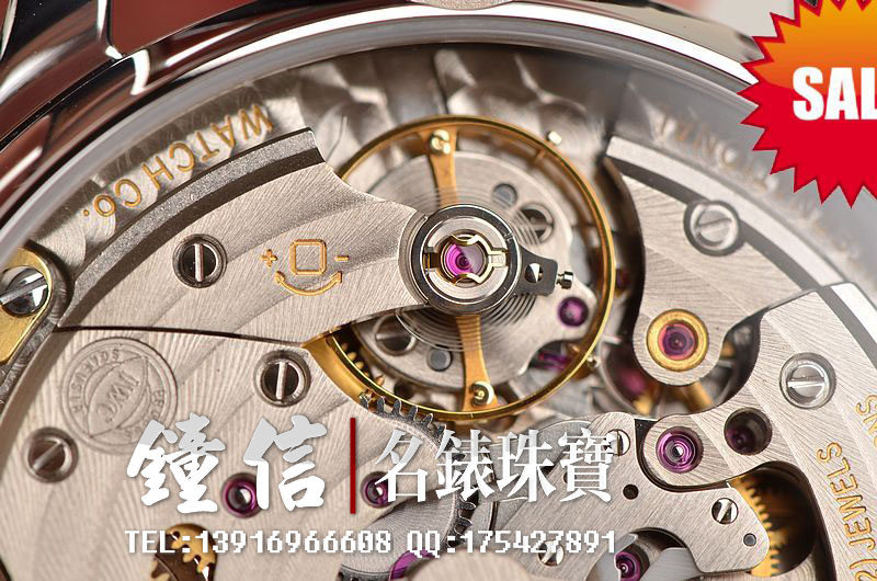 IWC自产CAL.51011型机芯,自动机械,极其精致日内瓦条纹打磨,双发条盒,比勒顿上弦系统,宝玑游丝,42钻,摆频21800,动力储存高达168小时,七天链,长动力机芯。走时状态极佳。
