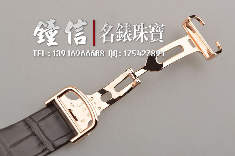 18K玫瑰金表壳及折叠式表扣,圣伯纳狗头印记。后配全新棕色鳄鱼皮表带。蓝宝石水晶镜面,立体白色表盘,镀铑指针,黑色罗马字刻度。蓝宝石表冠。口径30.3MM*38.5MM*5.38MM,相当于圆表33MM左右大小。防水30M。