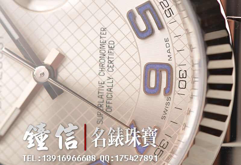 50小时动力储备,31钻,摆频28800。日历显示,瑞士天文台及劳力士双重认证,螺母摆轮调节系统、无卡度Breguet游丝、KIF防振器。走时状态极佳。