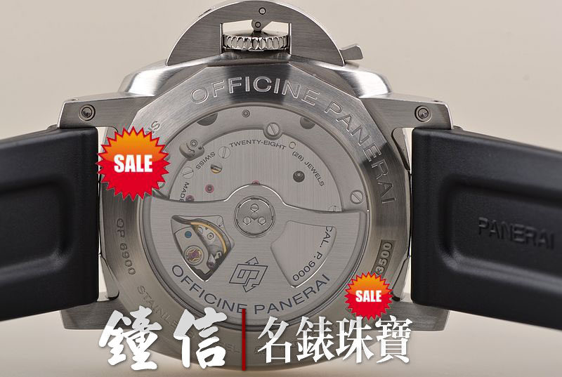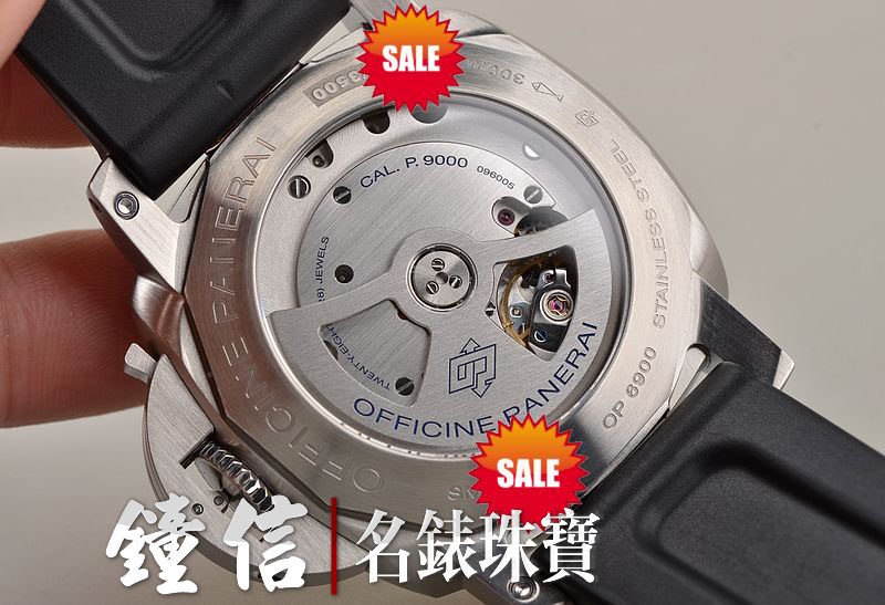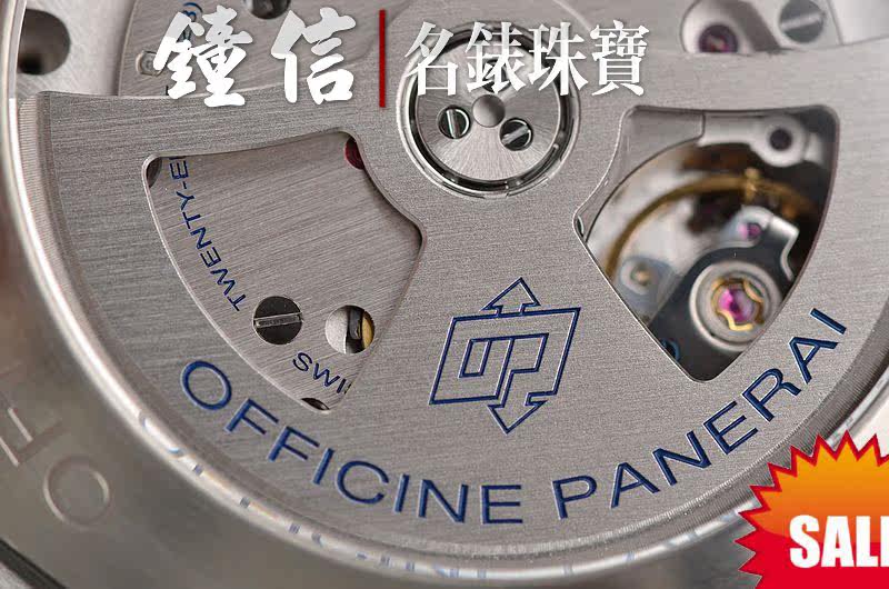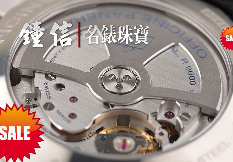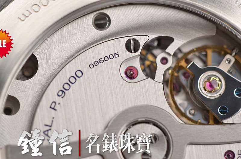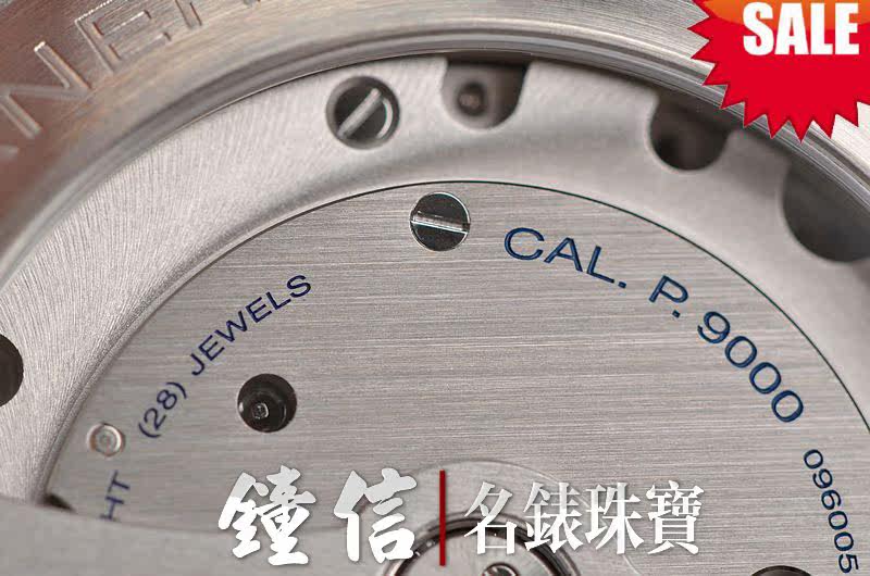 沛纳海自产的CAL.P.9000机芯,自动机械,极其精致日内瓦条纹打磨,倒角抛光修饰。双发条盒,28钻,由197个零件组成。因加百录避震器。动力储存72小时,3天链。走时状态极佳。