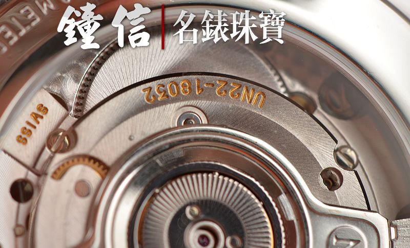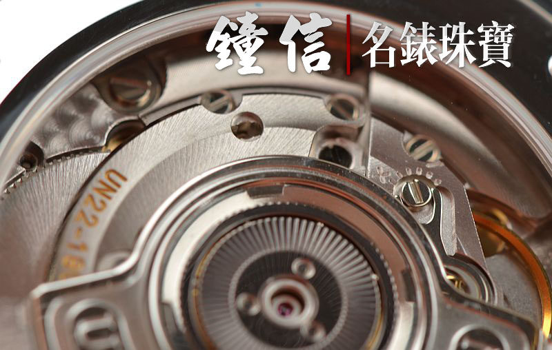 雅典CAL.UN-22型机芯,自动机械,精致日内瓦条纹打磨及倒角抛光修饰,品牌LOGO篆刻自动陀,29钻,两地时间及大日历功能,摆频28800,走时状态极佳。