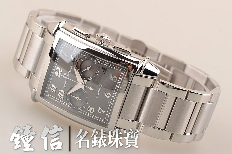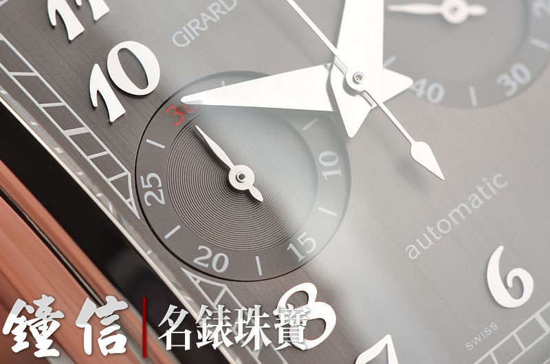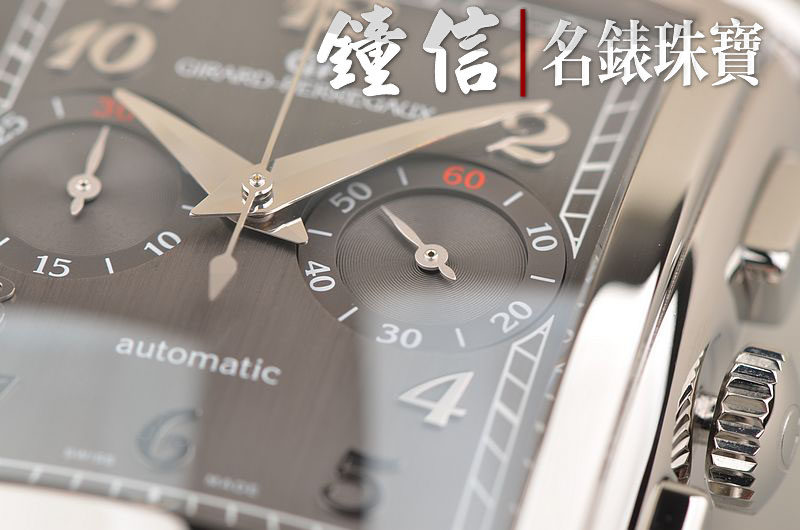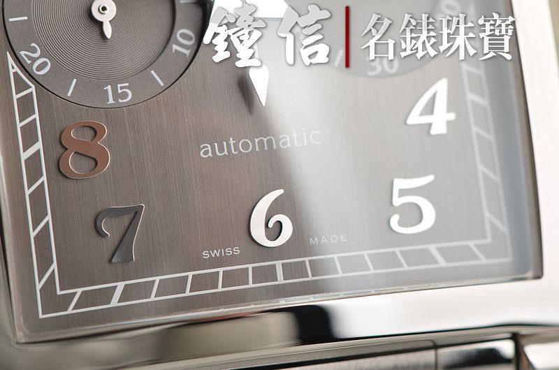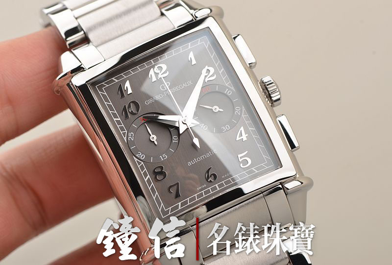 精钢表壳及链带,双向按压式折叠表扣。蓝宝石水晶镜面及底盖,立体银灰色拉丝面盘,银色立体阿拉伯数字刻度,3点位独立小秒针,9点位30分钟计时。口径52MM*36MM*13.27MM。相当于圆表43MM左右大小。防水30M。