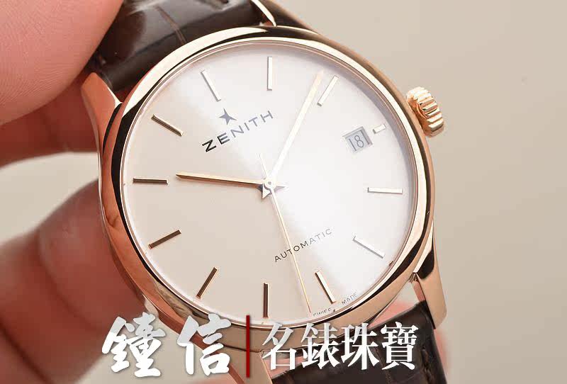 真力时自产的Elite 2572机芯,自动机械,极其精致日内瓦条纹打磨,倒角抛光修饰。由110个零件组成,17钻,摆频28800,动力储存约50小时。走时状态极佳。
