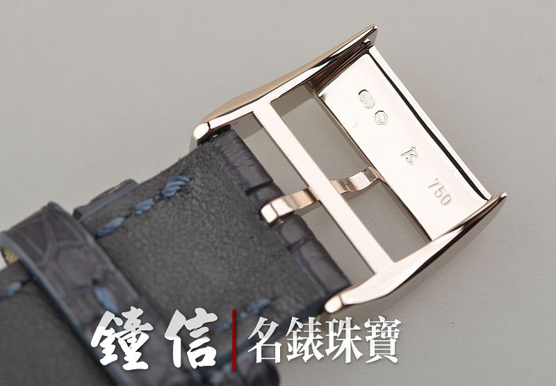 18K白金表壳及表扣,圣伯纳狗头印记。后配全新深蓝色短吻鳄鱼皮带。蓝宝石水晶镜面及底盖,立体银白色表盘,白金时分针、小秒针及刻度,第二时区时针及昼夜显示指针则运用了醒目的蓝钢针,整体上大气,简约,十分漂亮。表壳侧面10点位和8点位配备了小时快调按钮。口径40MM*9.1MM,防水30M。