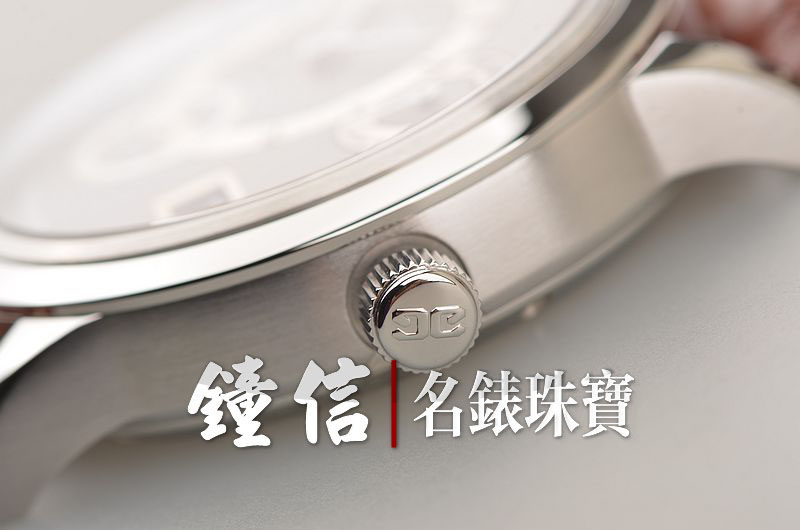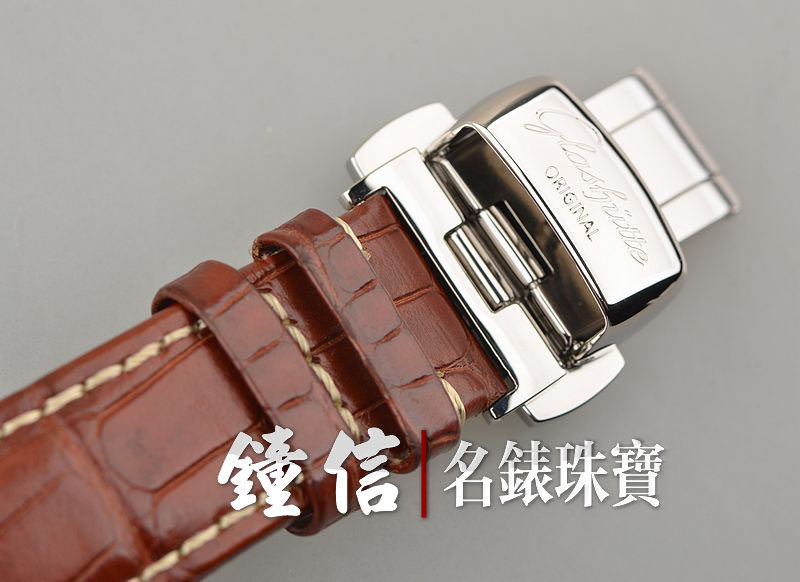 精钢表壳及折叠式表扣,原厂棕色路易斯安娜短吻鳄鱼皮表带成色极新。蓝宝石水晶镜面及底盖,立体深灰色表盘,偏心小三针设计,大日历视窗,指针式动能储备显示。口径39.3MM*12MM,防水30M。