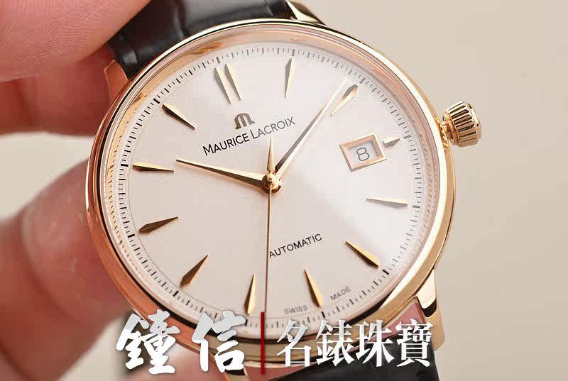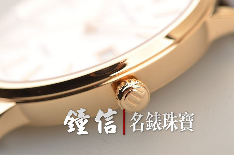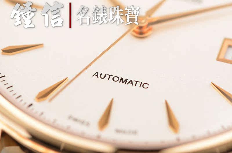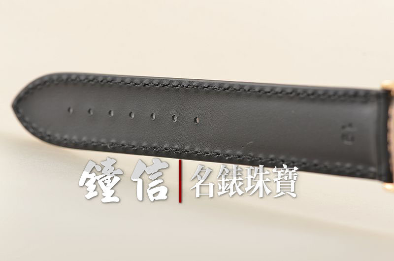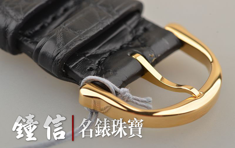 18K玫瑰金表壳及表扣,圣伯纳狗头印记。全新原厂黑色鳄鱼皮表带。蓝宝石水晶镜面及底盖,立体白色喷砂表盘,金质刻度及指针,大三针设计,3点位日历显示功能。口径38MM*9.2MM。防水30M。