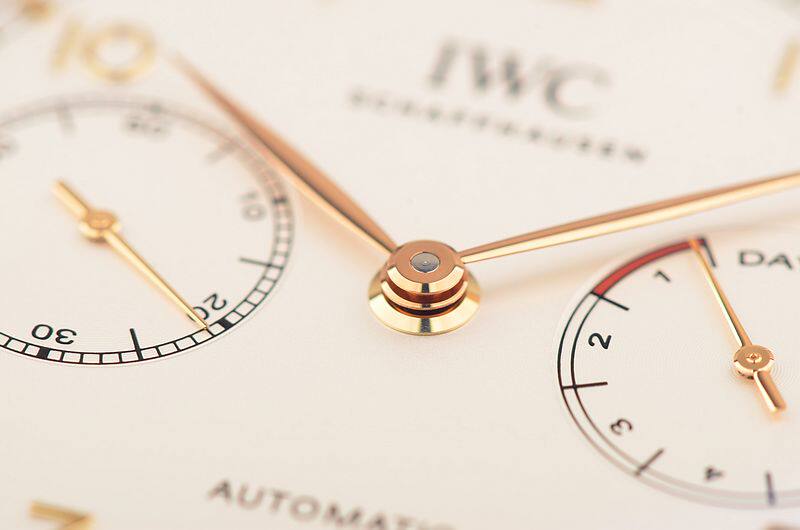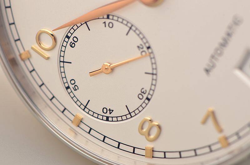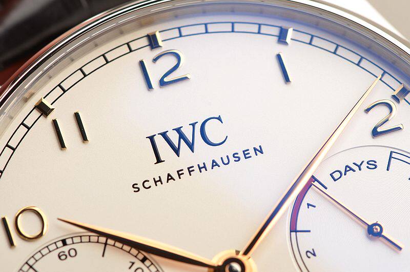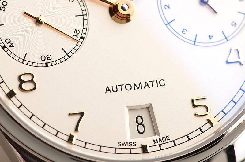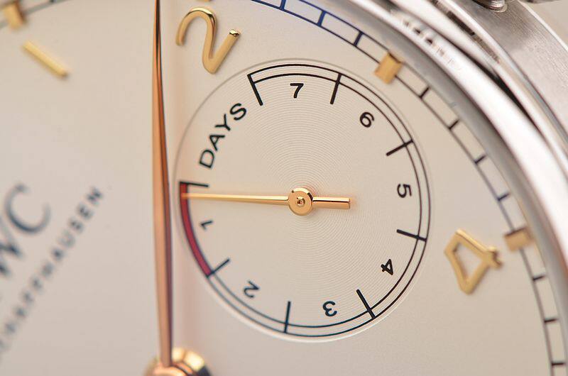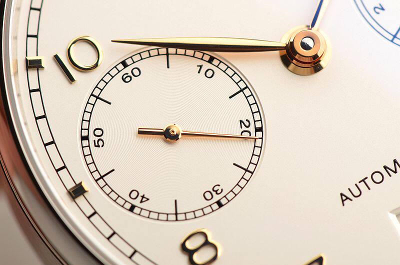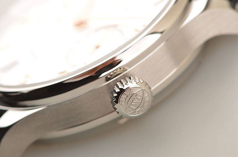 IWC自产CAL.52010型机芯,自动机械,极其精致日内瓦条纹打磨,倒角抛光修饰。比勒顿上弦系统,2015年起,一款来自全新52000型机芯系列的自制机芯为IWC葡萄牙系列自动腕表提供动力。具有传奇色彩的比勒顿上链系统又经改进:上链棘爪、自动轮以及摆陀轴承现在均由极为耐磨损的陶瓷材料制作而成,并且由双发条盒取代一个发条盒,进而实现了令人惊叹的七天之久的动力储备功能。31钻,摆频28800,5方位校正机芯,动力储存约168小时,七天链长动力机芯。