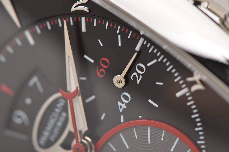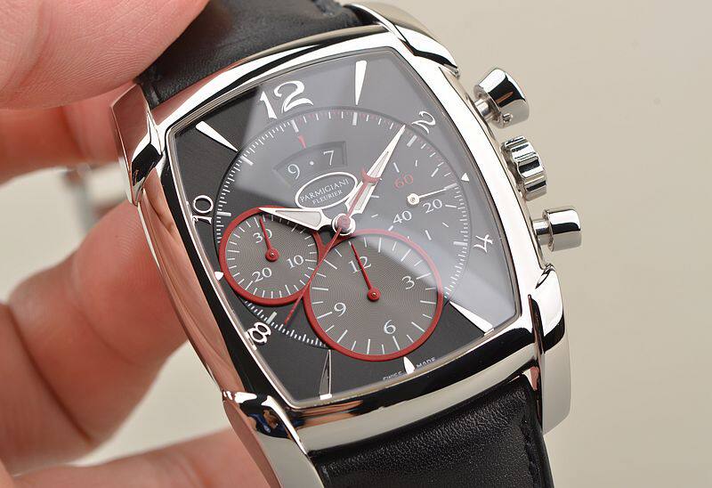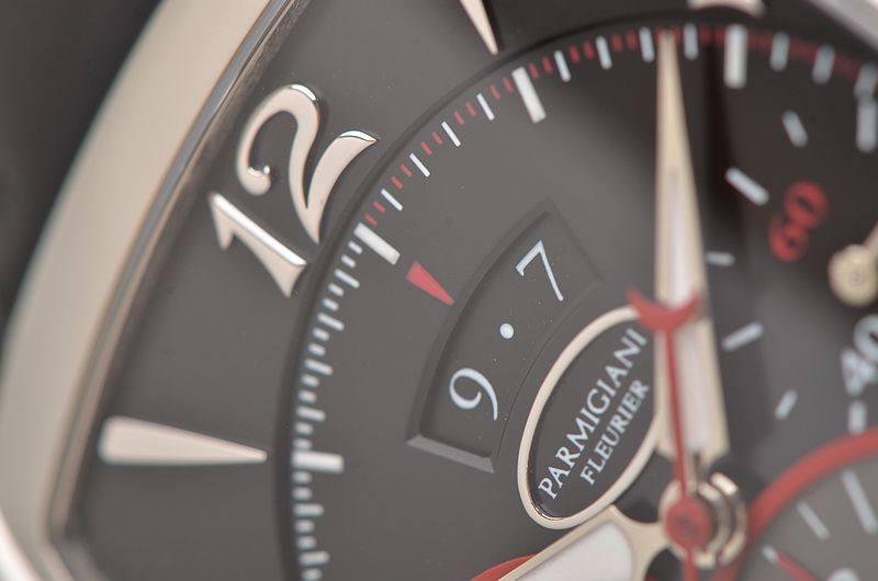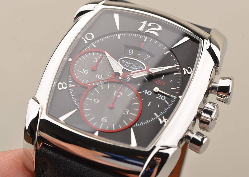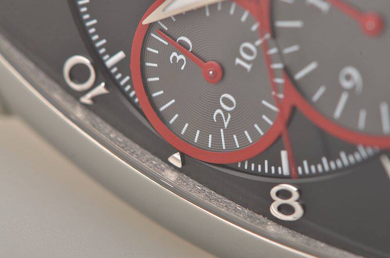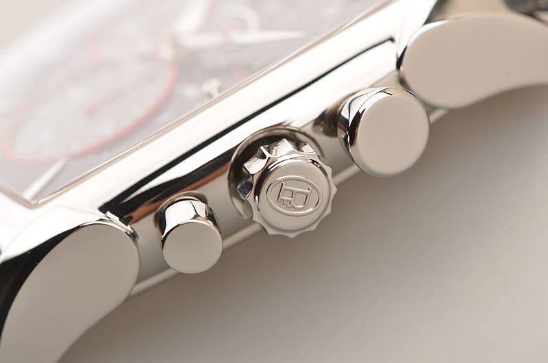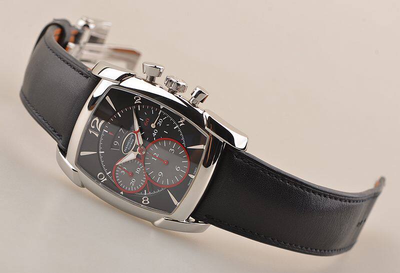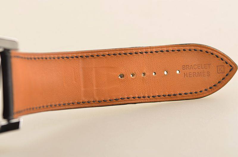 精钢表壳及折叠式表扣,原厂黑色爱马仕皮带成色很新。蓝宝石水晶镜面及底盖。立体黑灰双色计时表盘,红色计时表圈及秒针,9点位30分钟计时,6点位12小时计时,3点位独立小秒针。夜光时分针。12点位大日历视窗显示。口径53MM*39.2MM*12.8MM。相当于圆表44MM左右大小。防水30M。