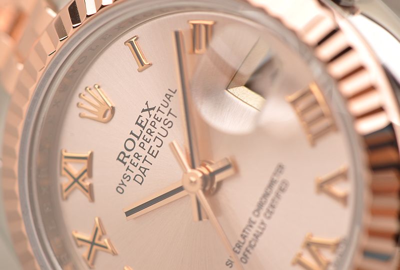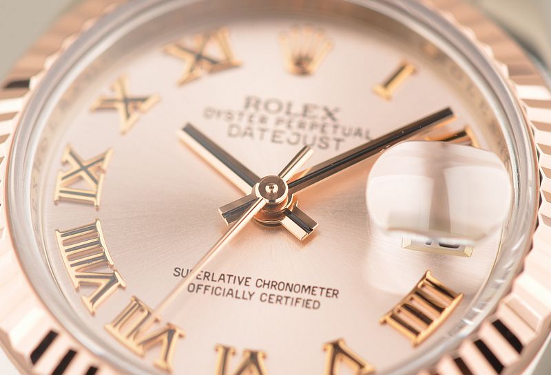 劳力士自产CAL.2235型机芯,自动机械,瑞士天文台认证,31钻,摆频28800,动力储存约50小时。走时状态极佳。