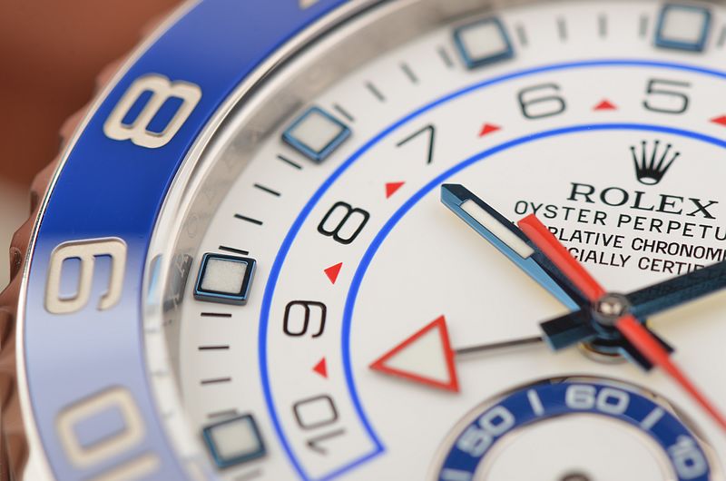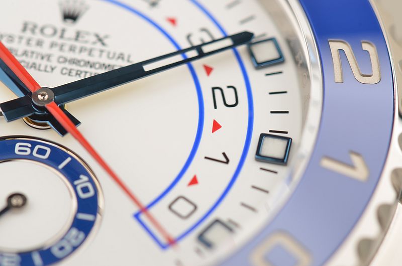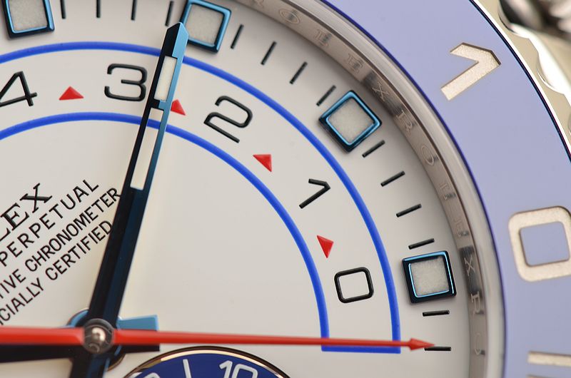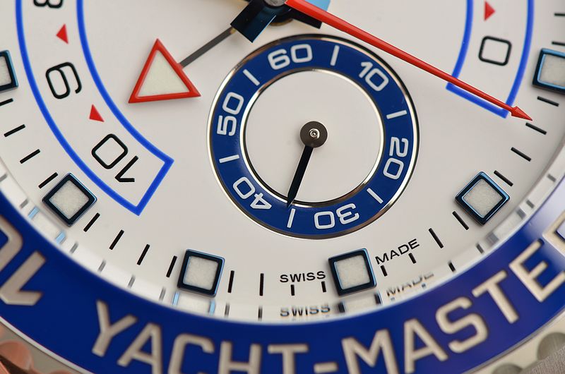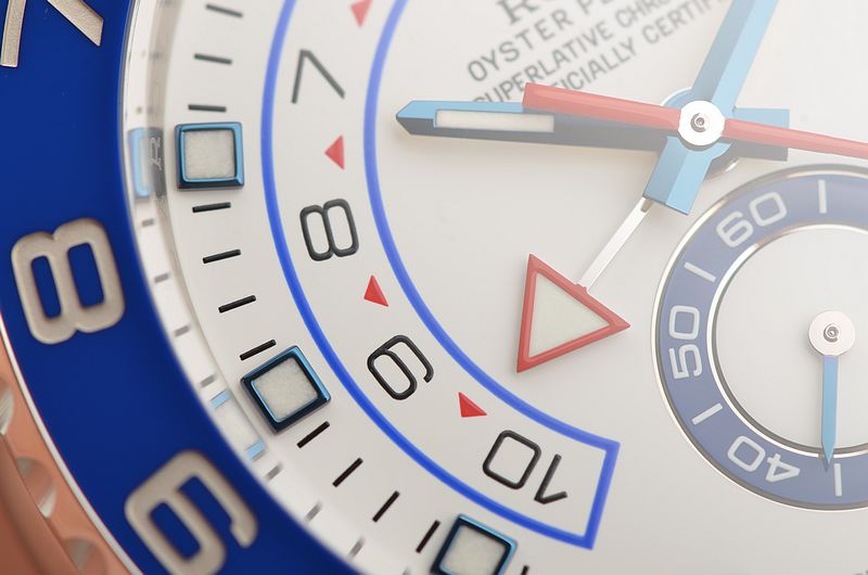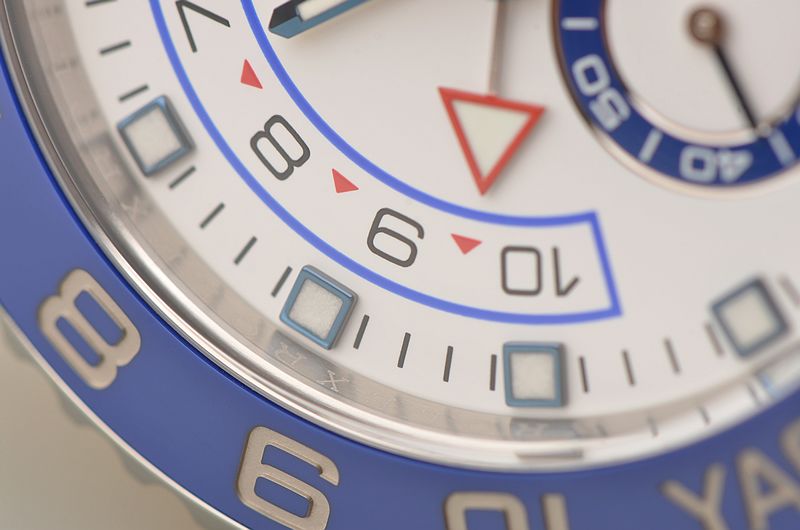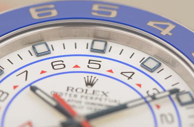 劳力士自产新款CAL.4161型机芯,自动机械,由360个零件组成,瑞士天文台认证,倒数计时及瞬时同步功能。顺磁性蓝色Parachrom游丝,摆频28800,动力储存约72小时,三天链。走时状态极佳。