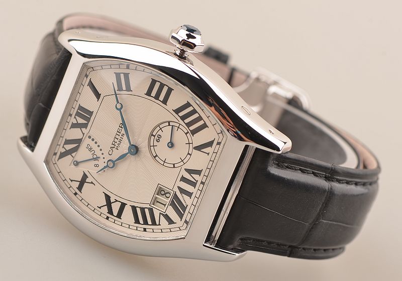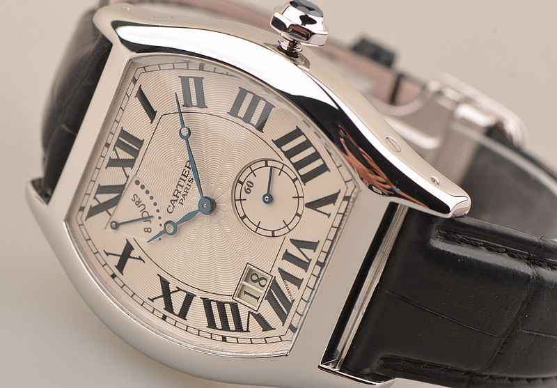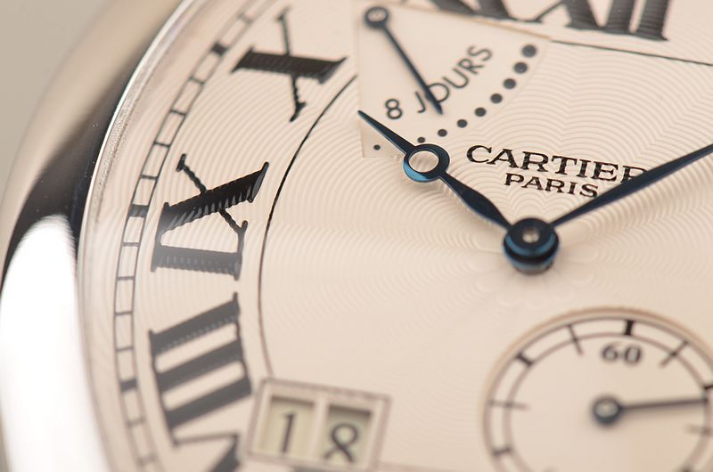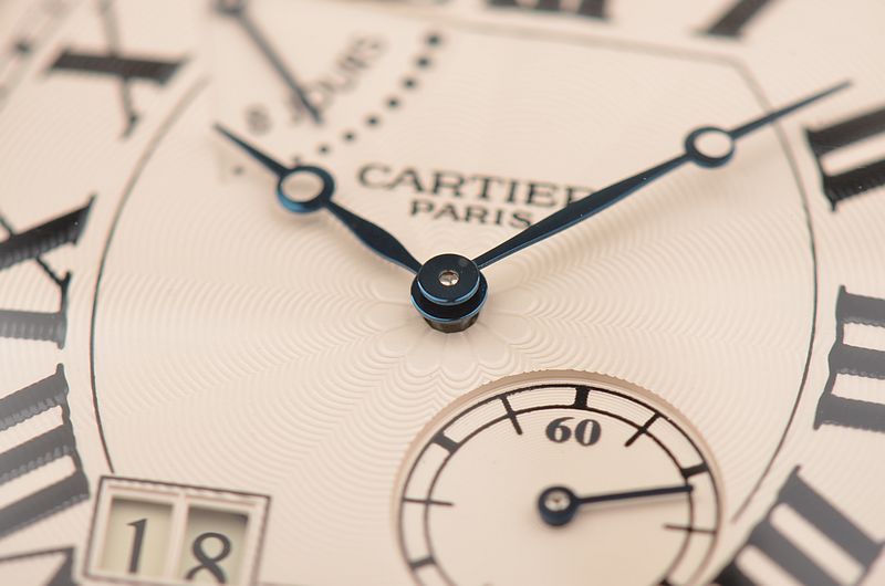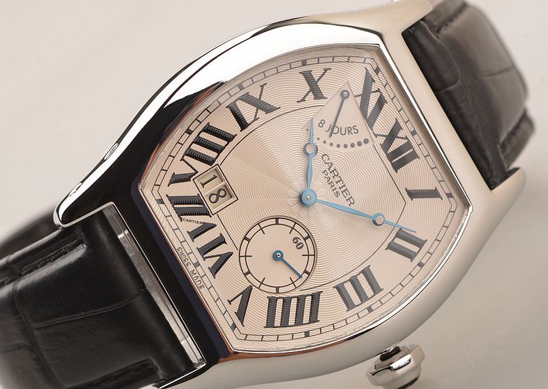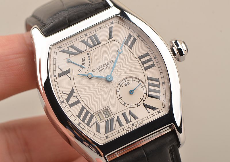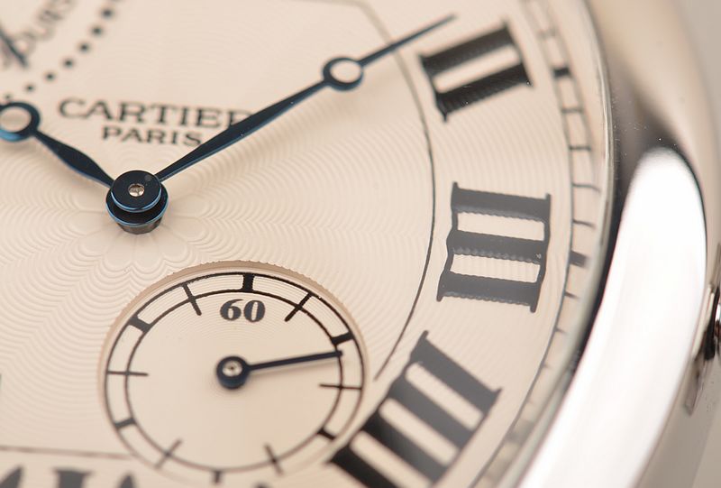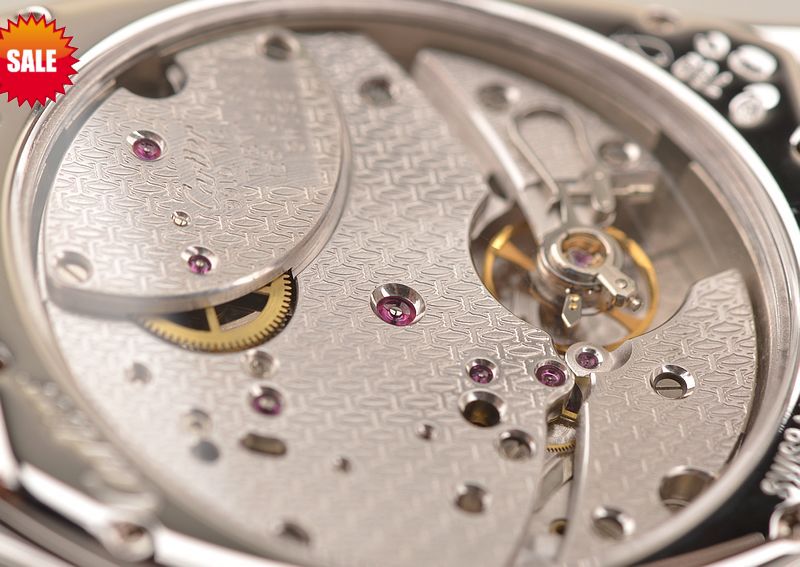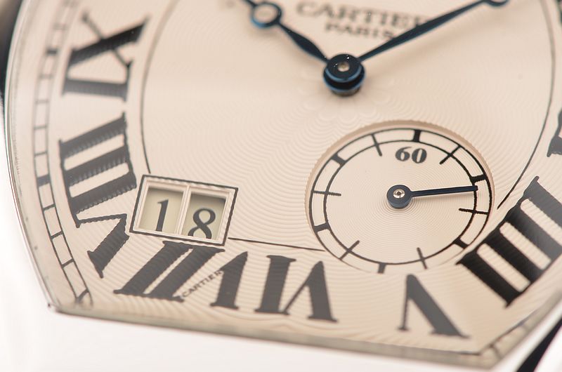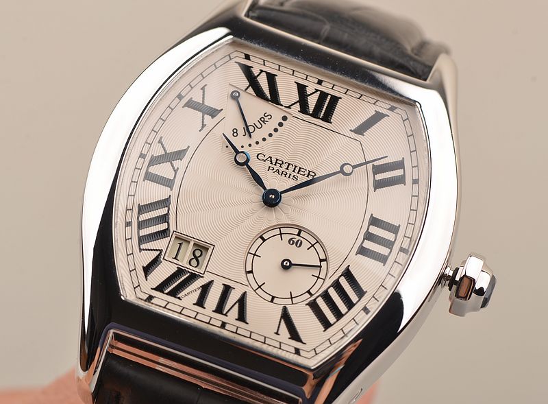 卡地亚顶级巴黎工作室机芯,CAL.9910MC型机芯,手上链,极其精致人手雕花机芯,倒角抛光修饰,鹅颈微调,25钻,摆频28800,八天链,动力储存高达192小时。走时状态极佳。