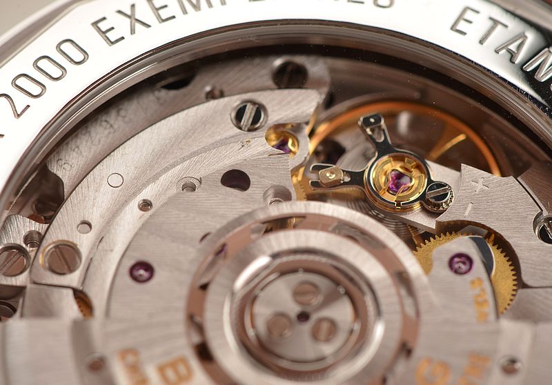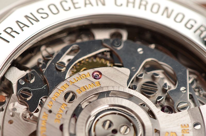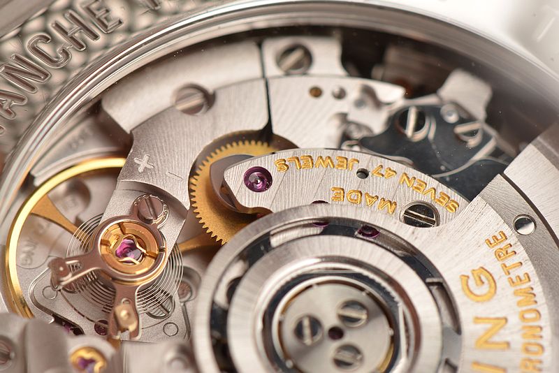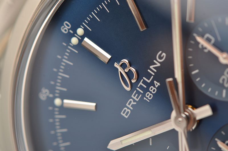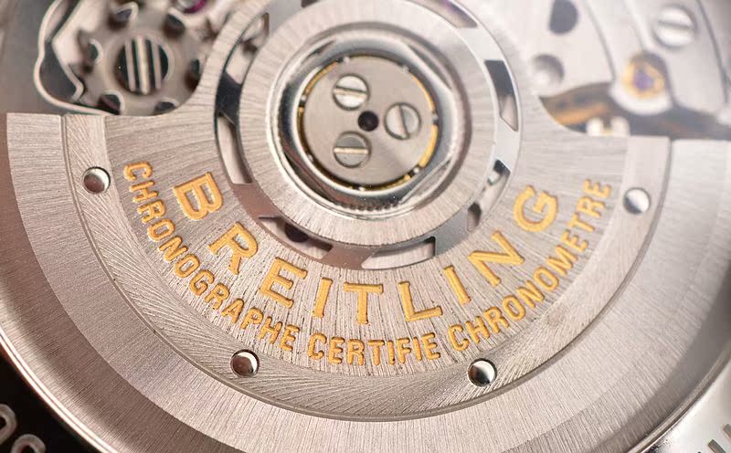 百年灵新款自产CAL.01型机芯,自动机械,计时及日历功能,极其精致日内瓦条纹打磨,倒角抛光修饰,47钻,摆频28800,动力储存约70小时,走时状态极佳。