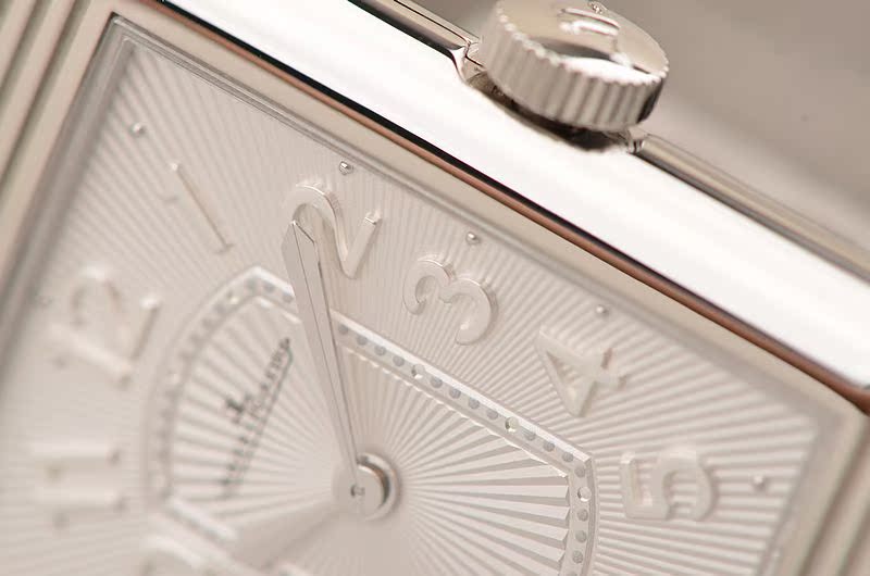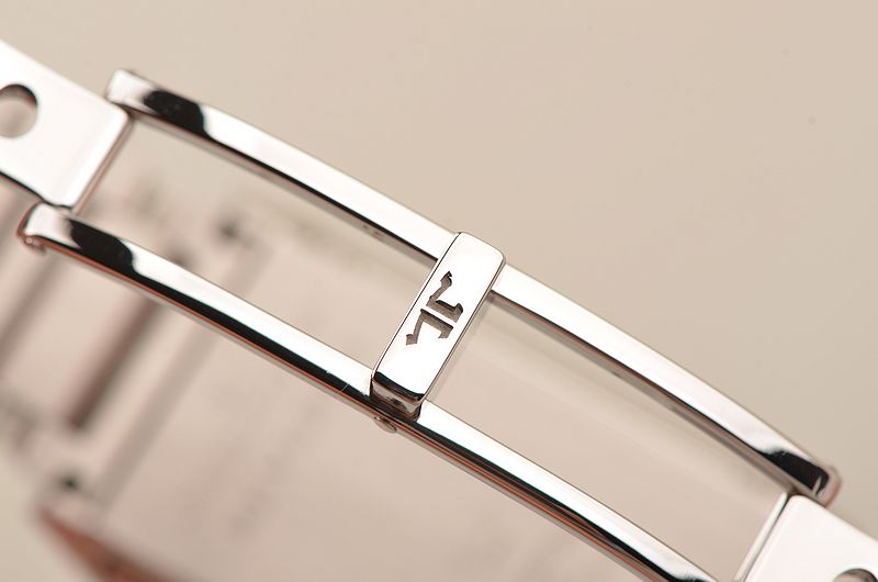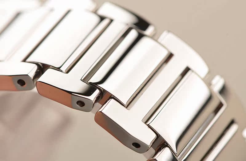 精钢表壳及链带,双向折叠式表扣。蓝宝石水晶镜面,立体银白色放射纹表盘,阿拉伯数字刻度,剑形指针。口径40MM*24MM*7.2MM,相当于圆表34MM左右大小。防水30M。
