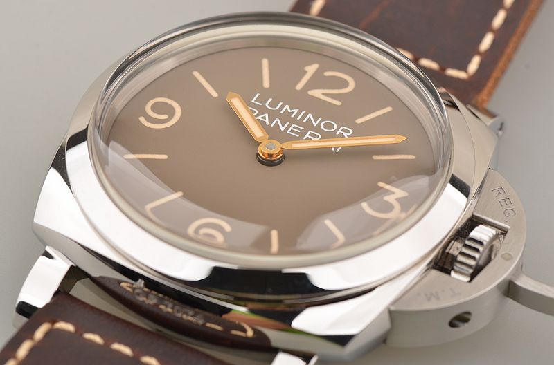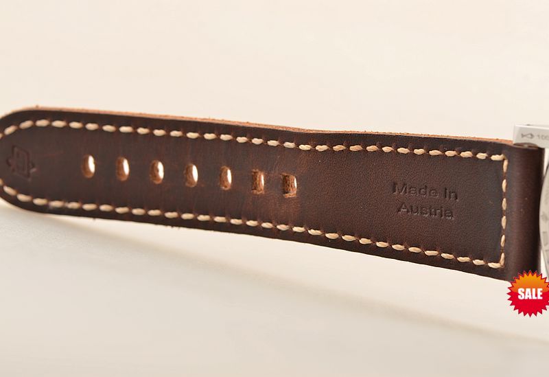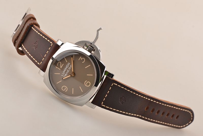 精钢表壳及表扣,原厂Ponte Vecchio小牛皮表带未使用品相。由刚玉制成的蓝宝石水晶镜面及底盖,立体棕色表盘,夜光刻度及金色指针。表冠护桥装置。口径47MM*16MM。防水100M。