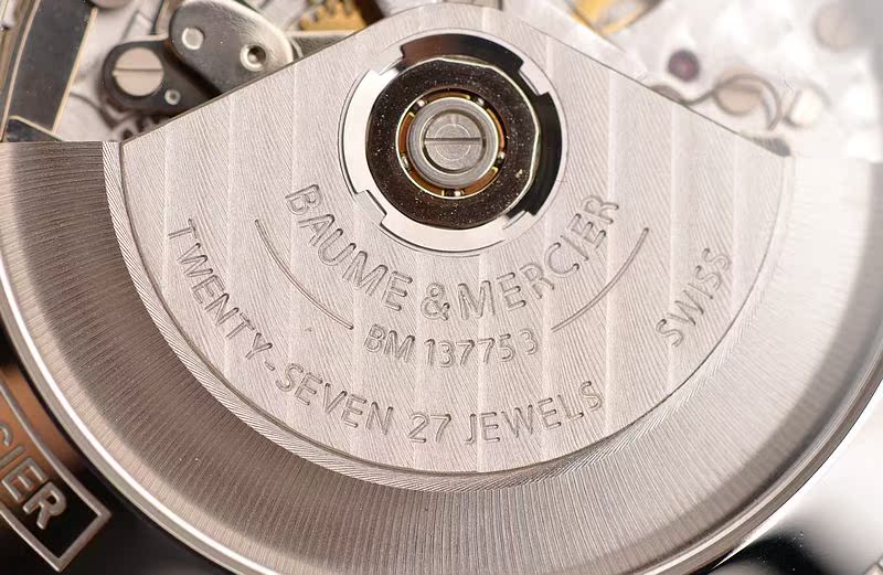 名士BM137753型机芯,自动机械,精致日内瓦条纹及鱼鳞纹打磨,27钻,摆频28800,动力储存约48小时,走时状态极佳。