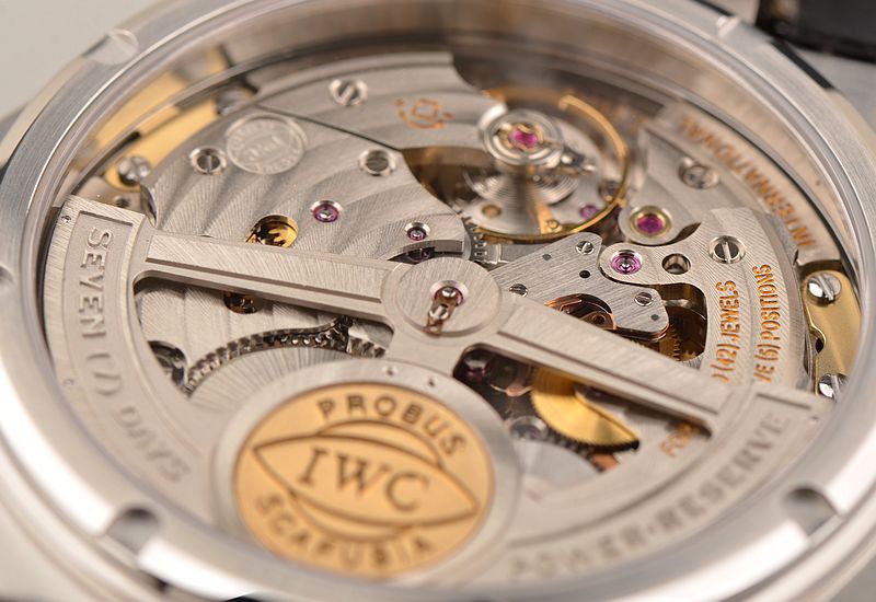 IWC自产的著名CAL.51113型机芯,自动机械,双发条盒,比勒顿上弦系统,宝玑游丝,42钻,5方位校正,摆频21600,动力储存约168小时,七天链,长动力机芯。精致日内瓦条纹打磨。走时状态极佳。