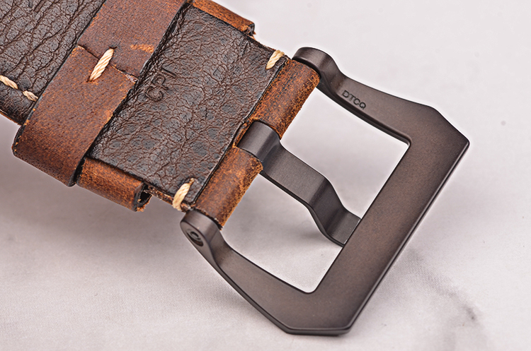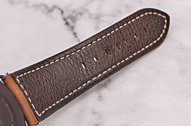黑色铝化陶瓷表壳及表扣,原厂棕色小牛皮表带成色极新。由刚玉制成的蓝宝石水晶镜面,立体黑色三明治夜光表壳及指针,9点位独立小秒针,旋入式防水表冠。口径47MM*8MM,防水100M。