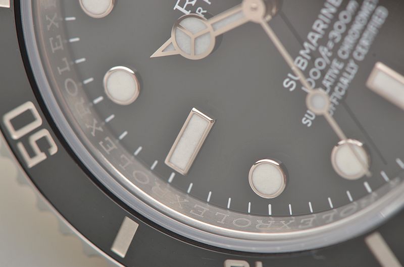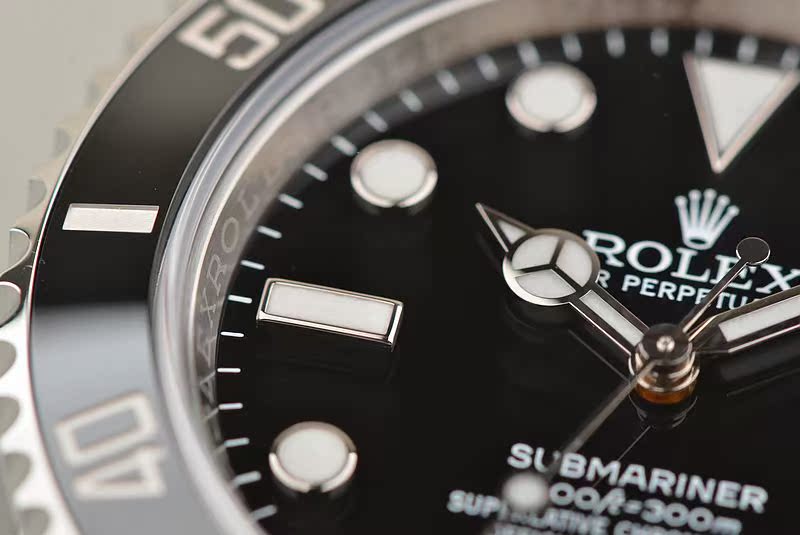 904L精钢表壳及链带,904L可微调折叠式搭扣。黑色陶瓷计时表圈。蓝宝石水晶镜面,立体黑色表盘,夜光奔驰指针及刻度,3点位放大镜日历视窗。旋入式防水表冠。口径40MM*13MM。防水300M。