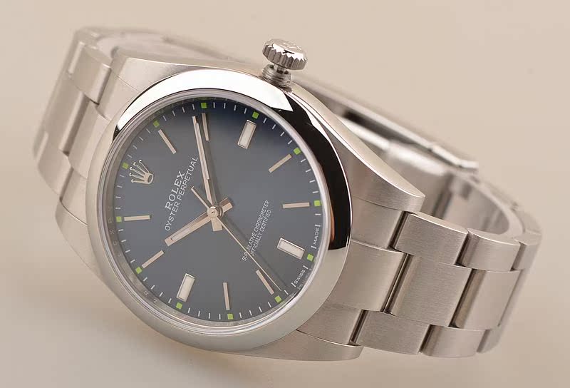 904L精钢表壳及链带,折叠式表扣。蓝宝石水晶镜面,立体蓝色表盘,天文台认证标示。夜光3、6、9位置时标及时分针。旋入式防水表把。口径39MM*11.3MM。防水100M。