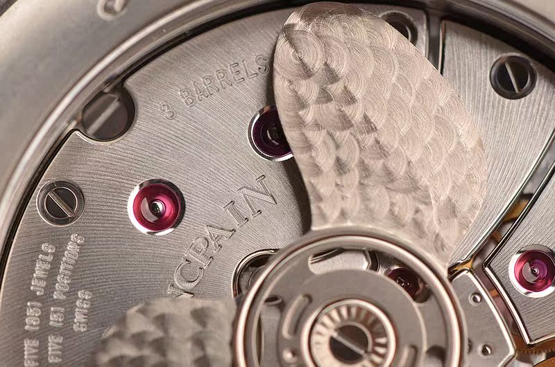 JB自产CAL.1315机芯,极其精致日内瓦条纹打磨,倒角抛光修饰。由227个零件组成,3个发条盒,35钻,摆频28800,5方位校正机芯,120小时长动力储能。潜水艇螺旋桨图腾镌刻自动转陀,精美高级质感。走时状态极佳。