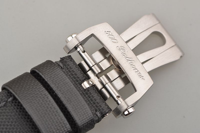 钛金属表壳及折叠式表扣,原厂黑色帆布防水牛皮表带成色很新。另附一条原厂全新备用尼龙表带,一条原厂全新备用胶带。共计三副表带。黑色陶瓷夜光旋转计时表圈。10点位排氦气阀装置,3点位旋入式防水表冠。立体黑灰双色表盘,夜光刻度及指针,4点位日历显示功能。口径48MM*16.8MM。防水深达1000M。