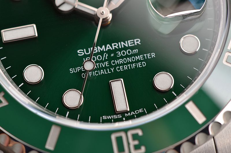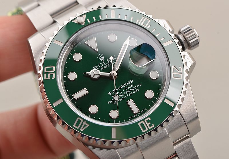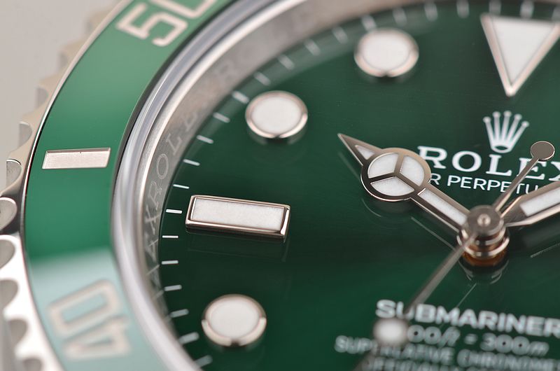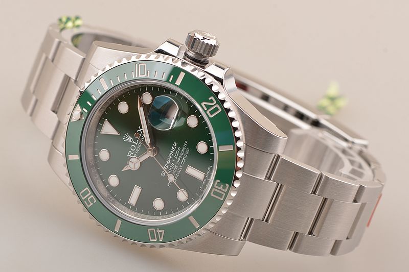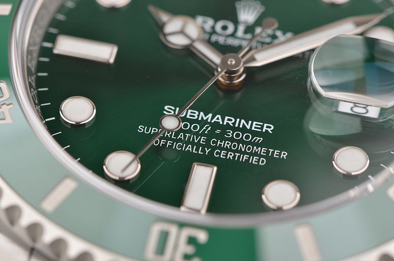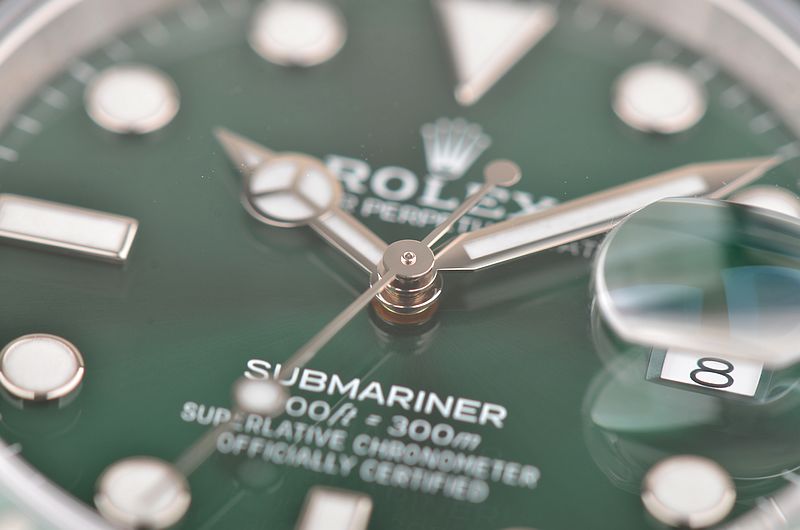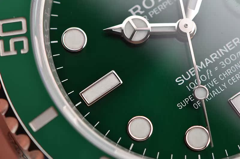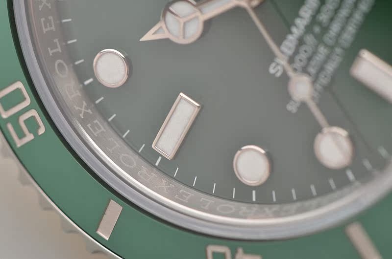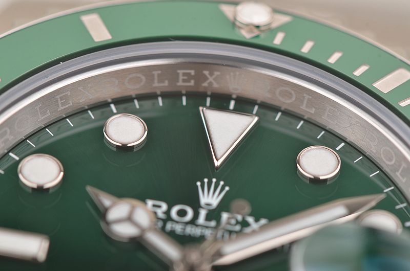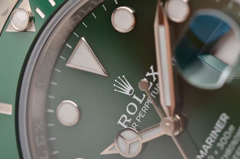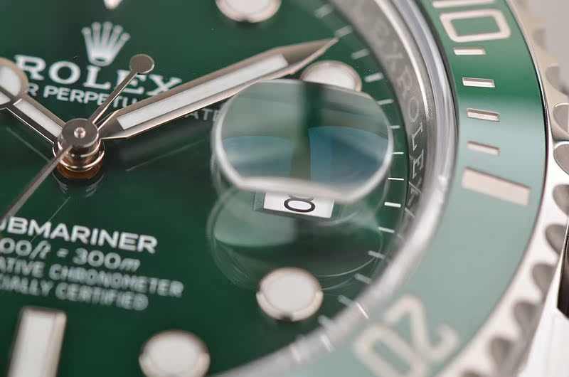 904L精钢表壳及链带,Glidelock可调节折叠带扣。绿色陶瓷渐进式旋转Cerachrom外圈,立体绿色表盘,18K白金夜光刻度及指针,3点位放大镜日历视窗。旋入式防水表冠。口径40MM*13.6MM,防水300M。