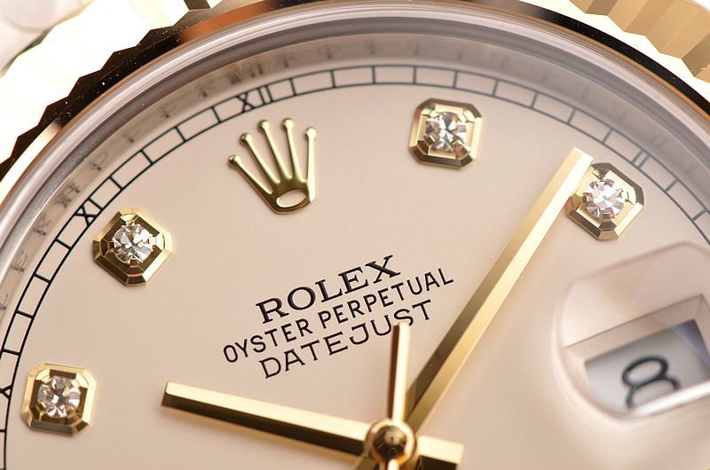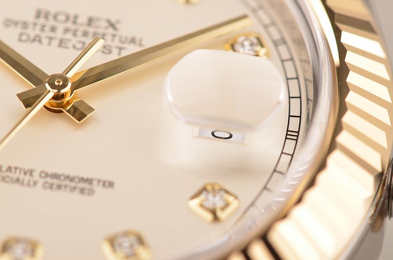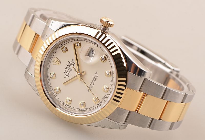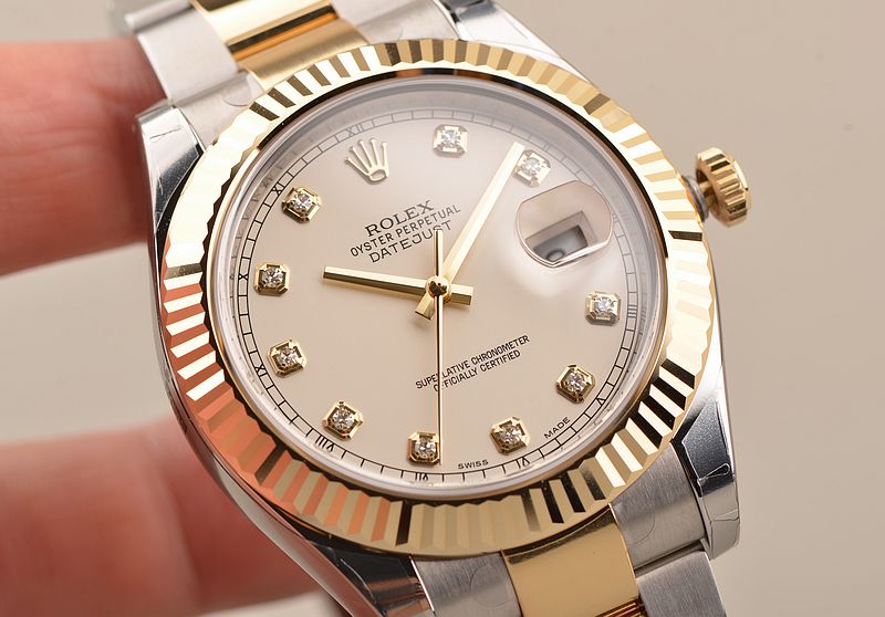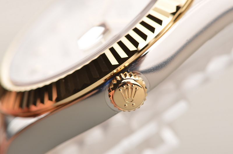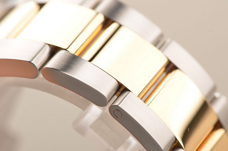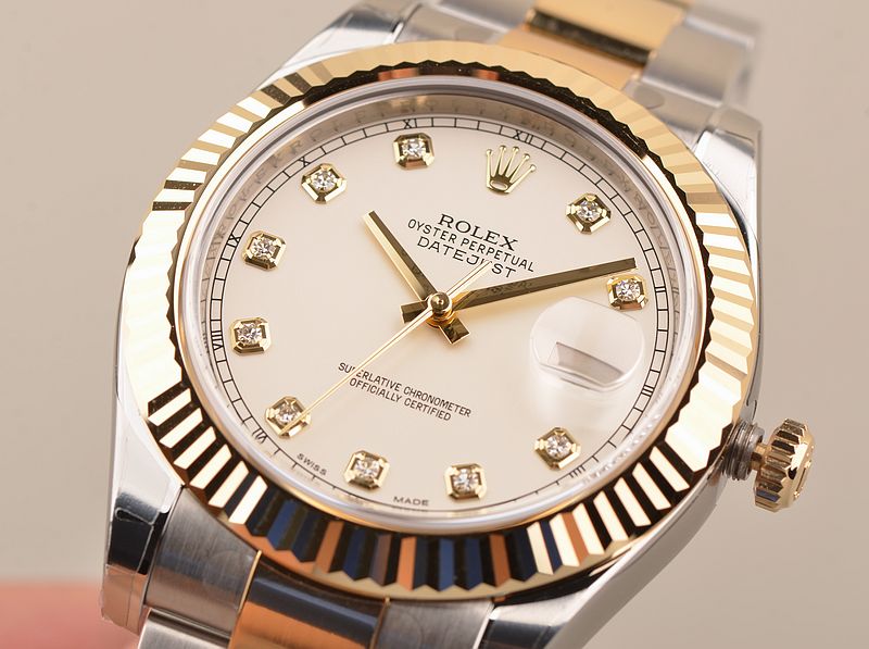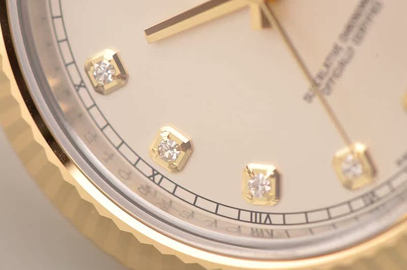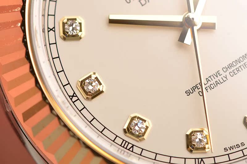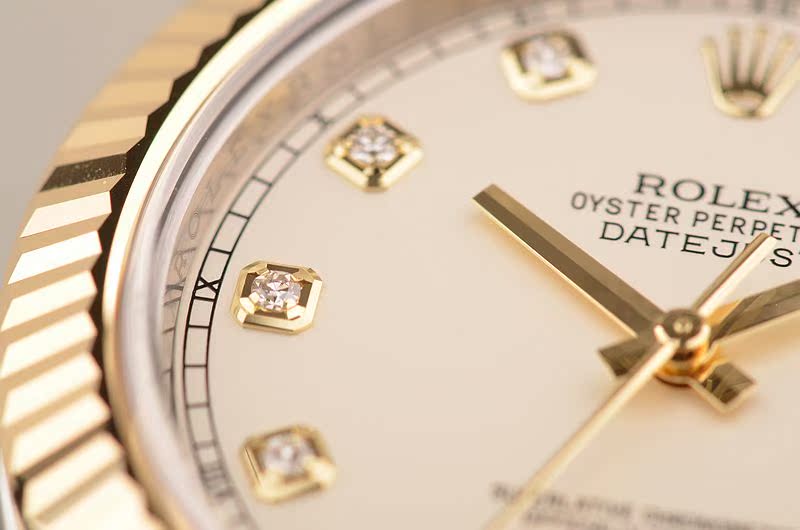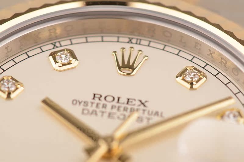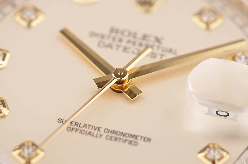 904L精钢及18K黄金表壳及链带,折叠式表扣。三角坑纹表圈。立体向牙白色表盘,黄金包钻刻度,黄金指针,3点位放大镜日历视窗,旋入式防水表冠。口径41MM*13.1MM。防水100M。
