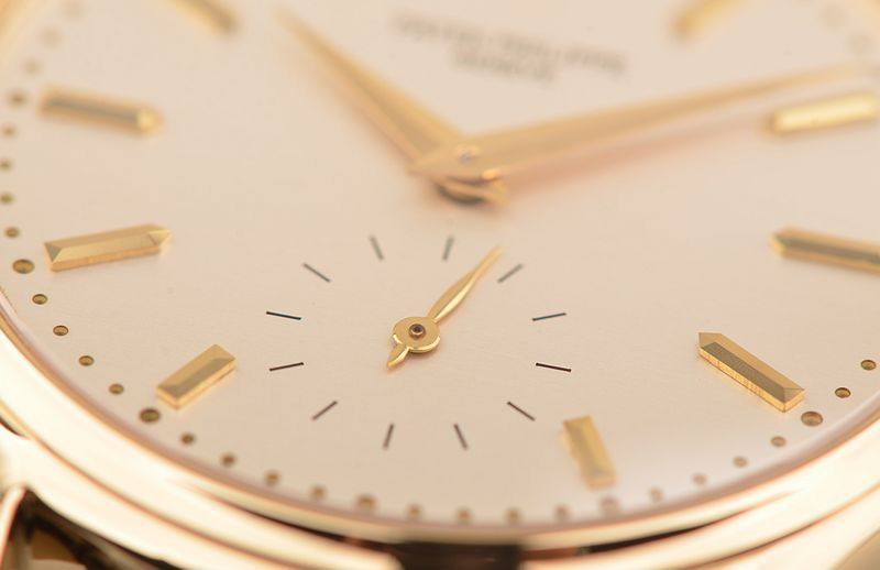 PP自产CAL.215型机芯,手上链,极其极致日内瓦人手条纹打磨,倒角抛光修饰。由130个零件组成,18钻,摆频28800,KIF避震器,Gyromax摆轮,八大平衡摆轮调节砝码。动力储存约44小时,走时状态极佳。