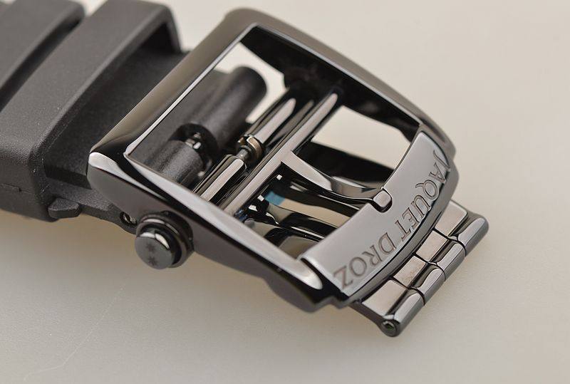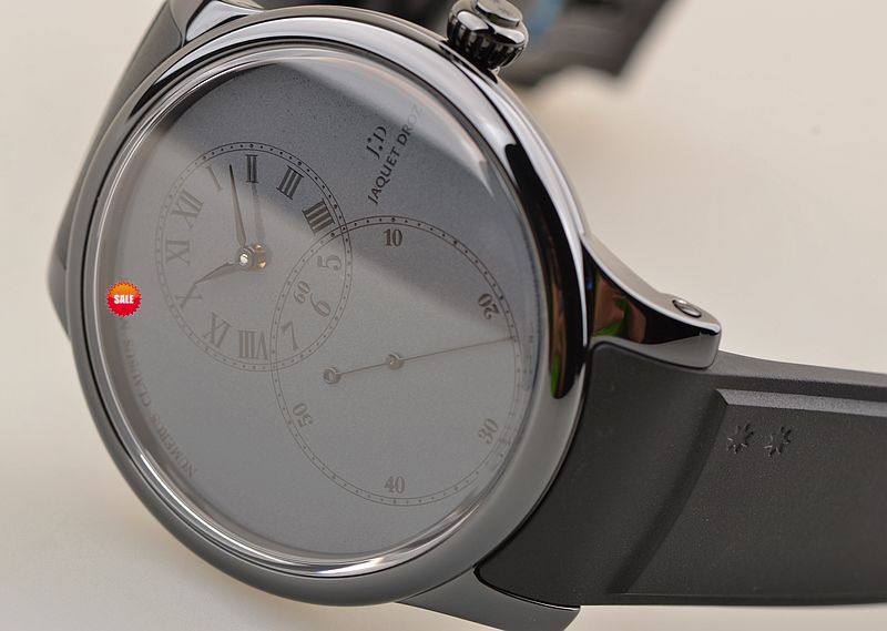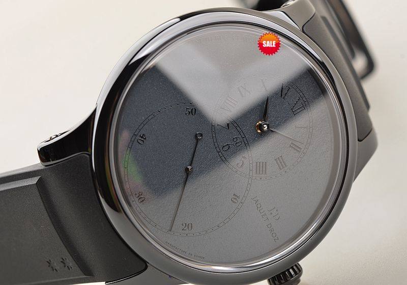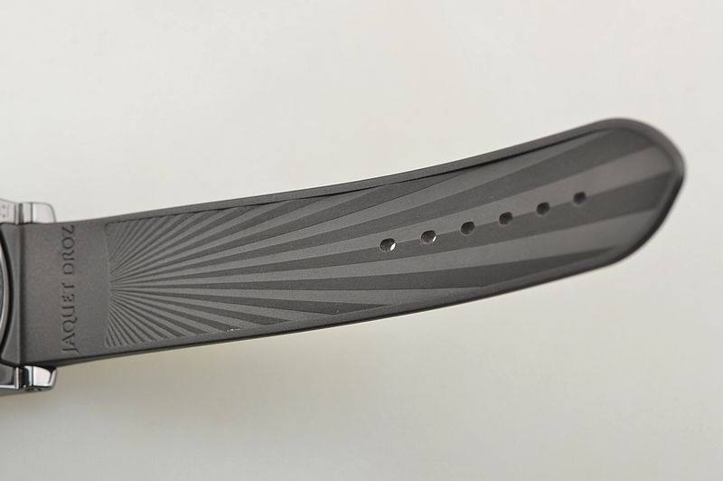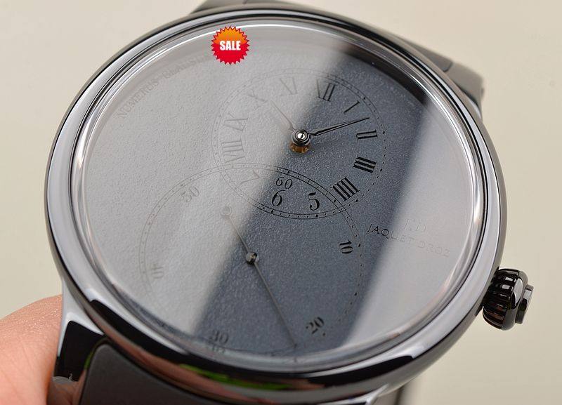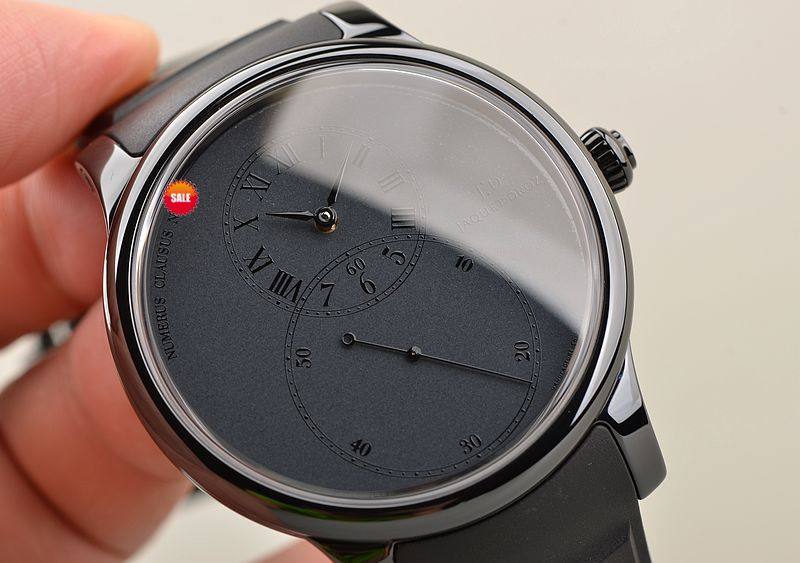 黑陶瓷表壳,PVD黑钢折叠式表扣,全新原厂黑色橡胶表带。蓝宝石水晶镜面及底盖,JD经典的立体深灰色大明火珐琅8字布局表盘,12点位罗马数字结合阿拉伯数字的时、分显示盘,6点位经典的大秒针盘,口径44MM*13MM。防水30M。