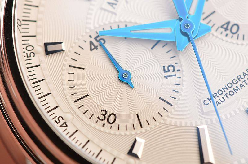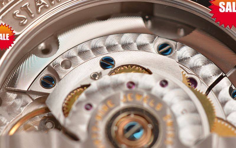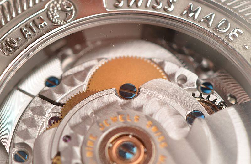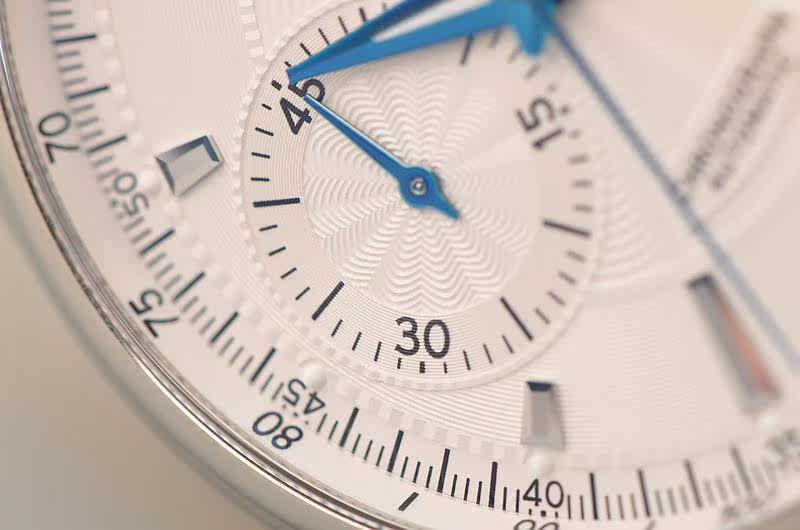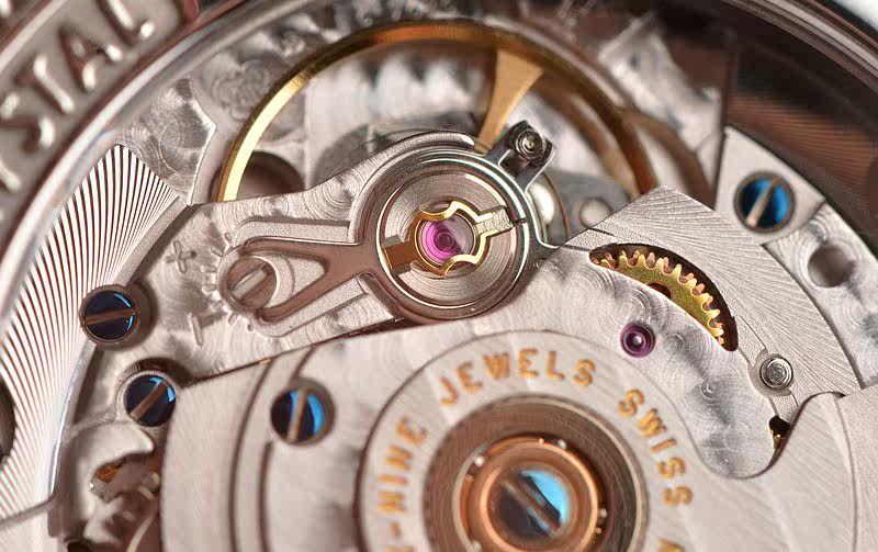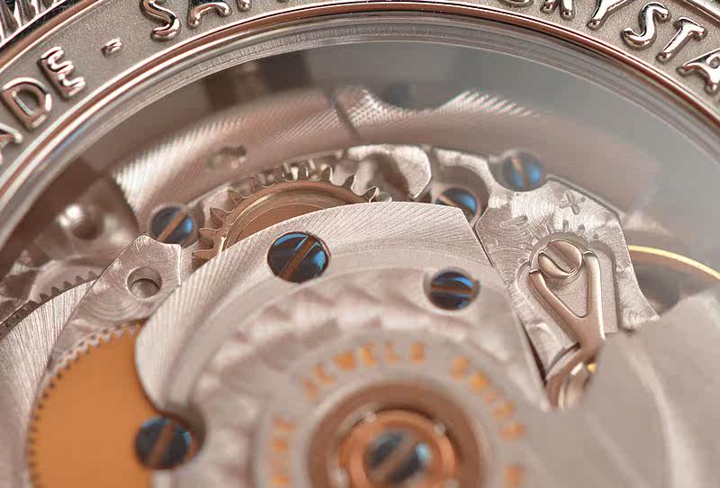 艾美达CAL.AN 2045型机芯,自动机械,45分钟计时功能。精致的日内瓦纹及鱼鳞纹打磨,49钻,摆频28800,走时状态极佳。