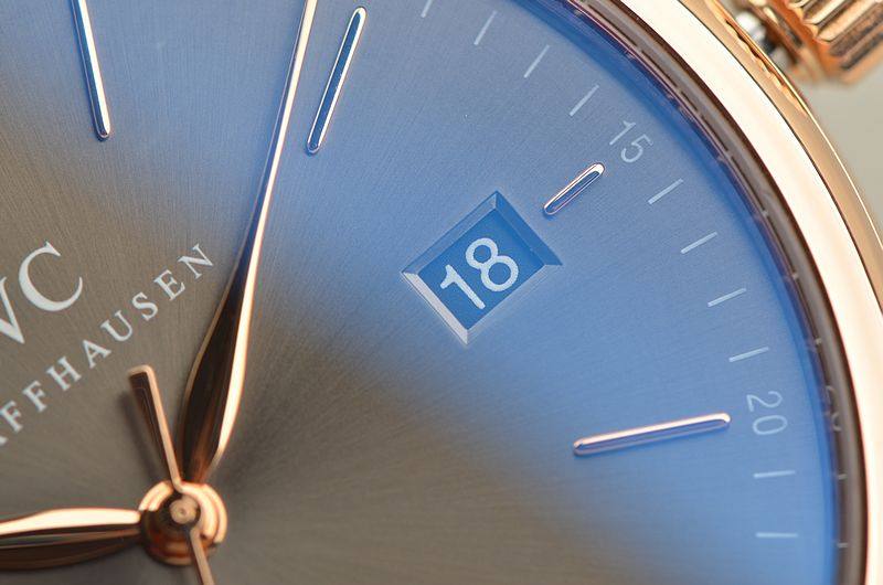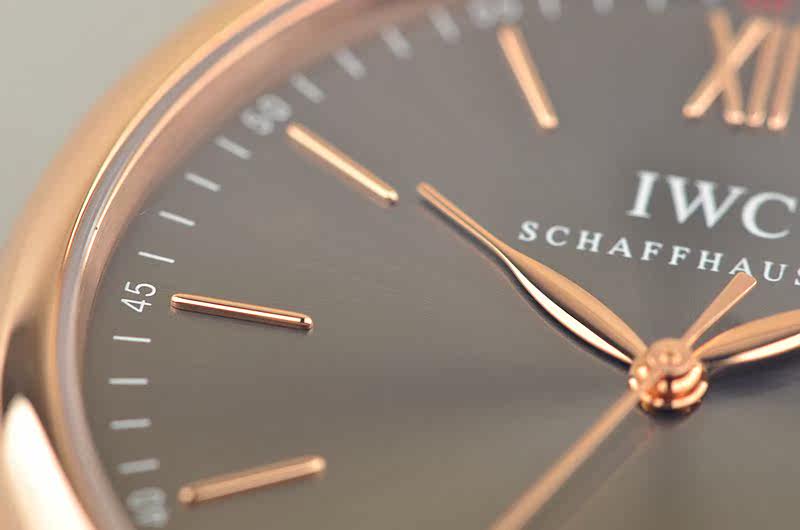 IWC自产CAL.35111型机芯,自动机械,极其精致日内瓦条纹打磨,倒角抛光修饰。25钻,摆频28800,动力储存约42小时。走时状态极佳。
