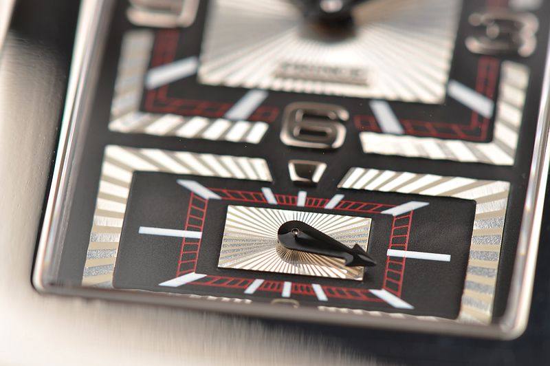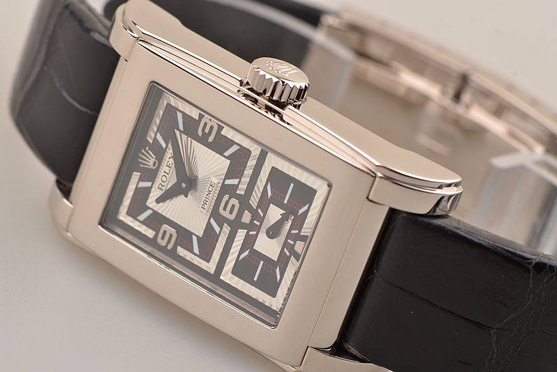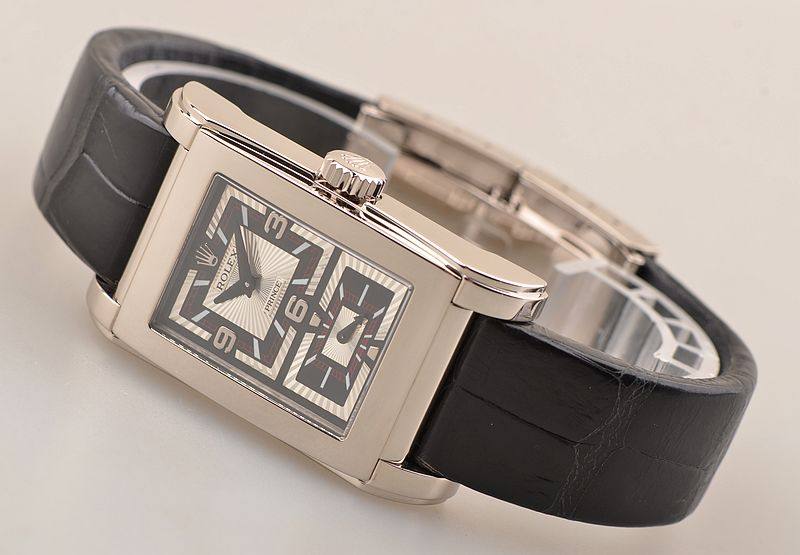 18K白金表壳及折叠式表扣,圣伯纳狗头印记。原厂黑色鳄鱼皮表带成色很新。蓝宝石水晶镜面及底盖,立体白金镀银双色雕刻表盘,小三针设计,夜光刻度,口径45MM*29MM*10MM。相当于圆表40MM左右大小。防水50M。