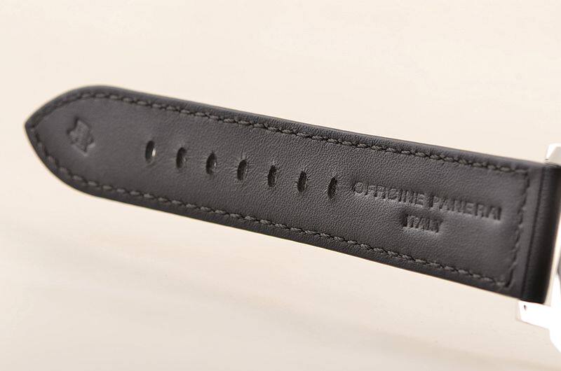 沛纳海OP X型机芯,手上链,精致日内瓦条纹打磨,倒角抛光修饰,鹅颈微调器,Nivarox游丝,Incabloc避震器,17钻,摆频21600,动力储存约56小时。走时状态极佳。