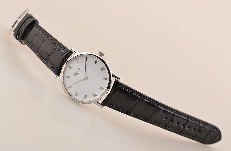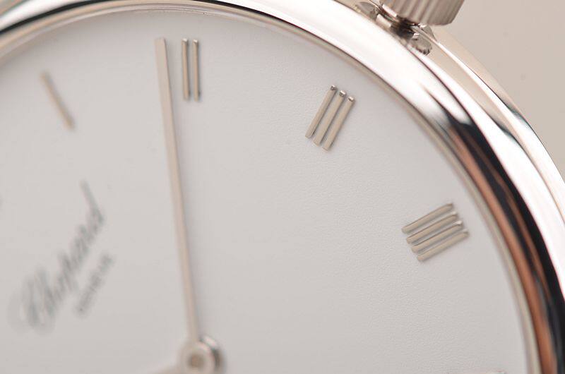 萧邦手上链机械机芯,17钻,摆频21600,动力储存约42小时,走时状态极佳。