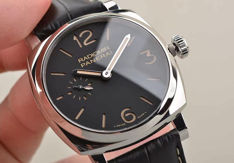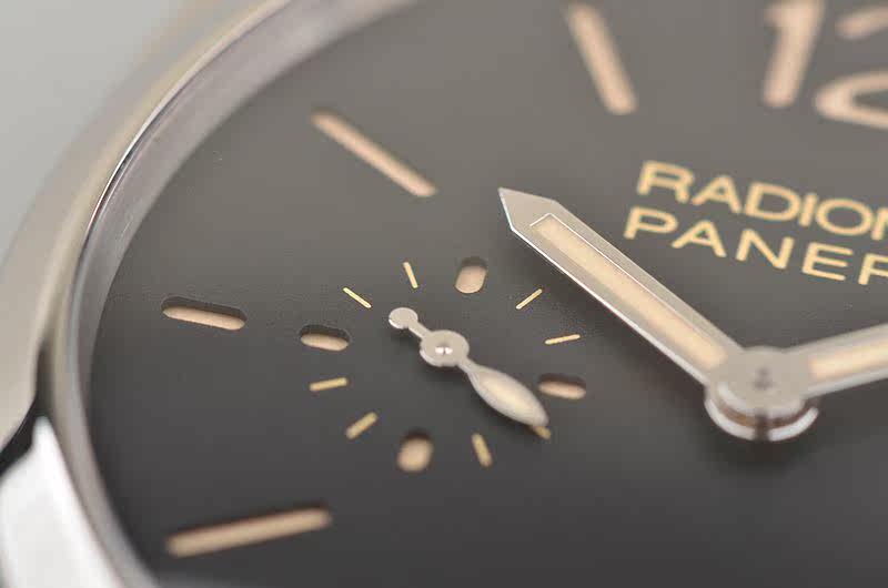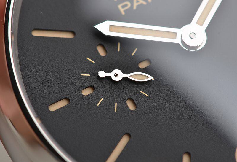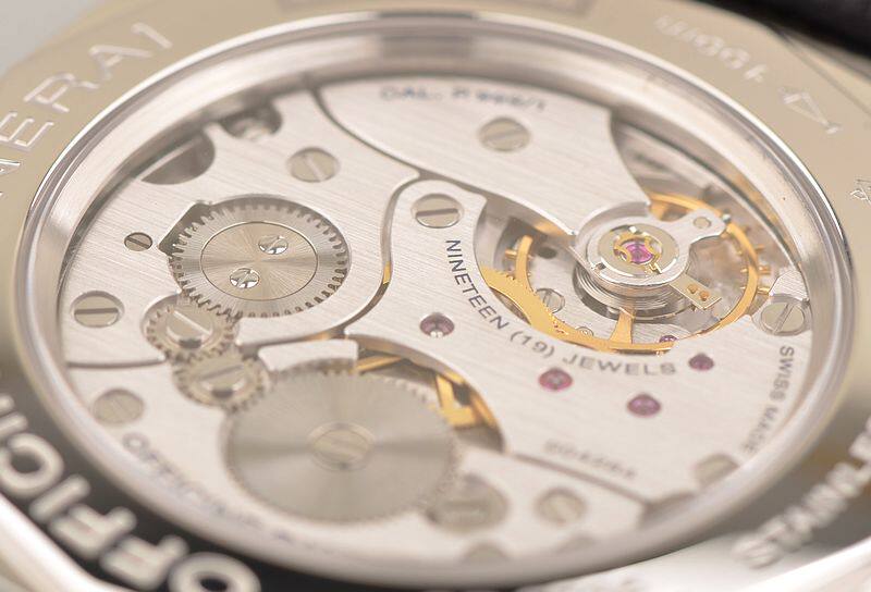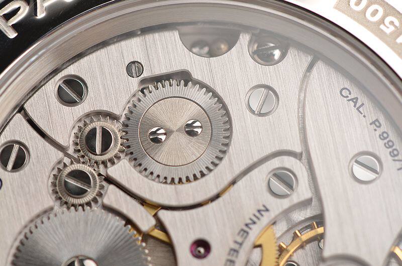 沛纳海自产的新款CAL.P.999型机芯,手动机械,由154个零件组成,精致日内瓦条纹打磨,19钻,摆频21600,动力储备约60小时,走时状态极佳。