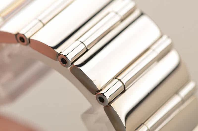 精钢表壳及链带,折叠式表扣。表框镶嵌38颗原厂VVS级天然美钻(共计0.24克拉),表盘镶嵌4颗原厂刻度钻,蓝宝石水晶镜面,立体银白色珍珠贝母表盘,白金指针。口径24MM*19.3MM*6MM,防水30M。