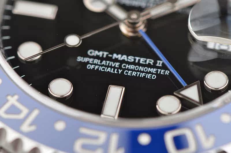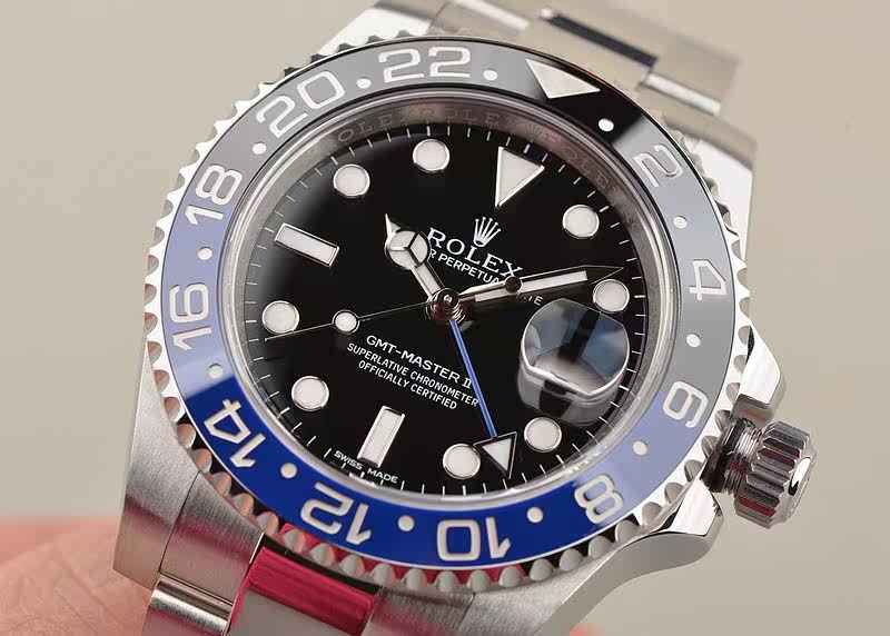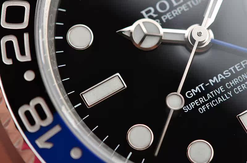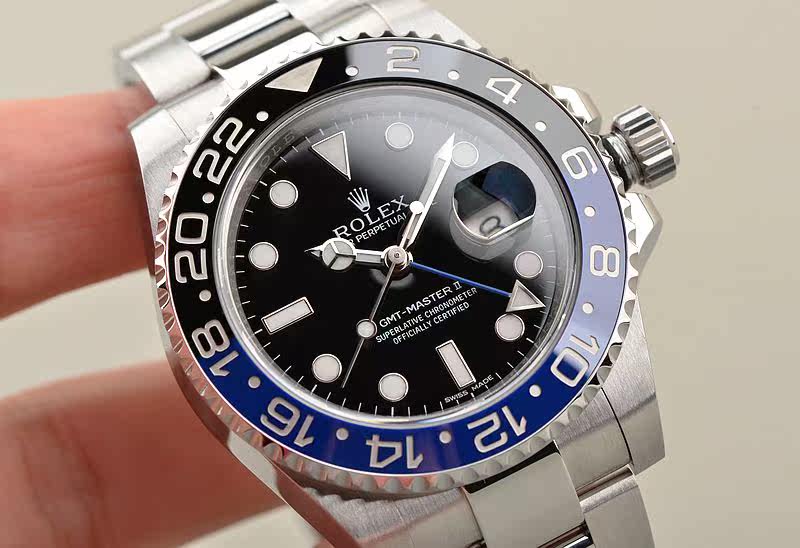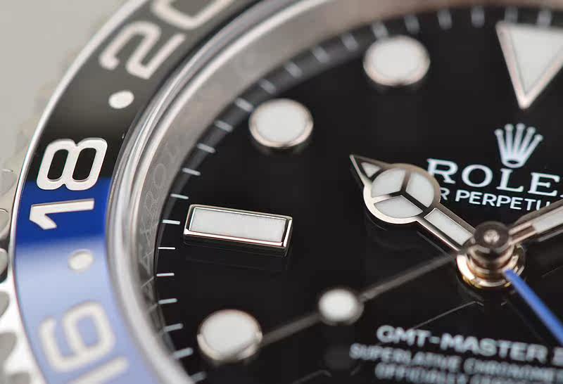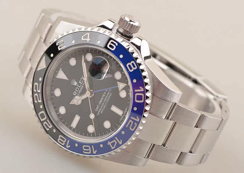 904L精钢表壳及链带,折叠式可微调表扣。双向旋转蓝黑陶瓷第二时区表圈(业内也称作为国米圈)。蓝宝石水晶镜面,立体黑色表盘,白金夜光刻度及指针,蓝色GMT第二时区指针,3点位放大镜日历视窗。旋入式防水表冠。口径40MM*13MM,防水100M。