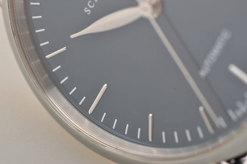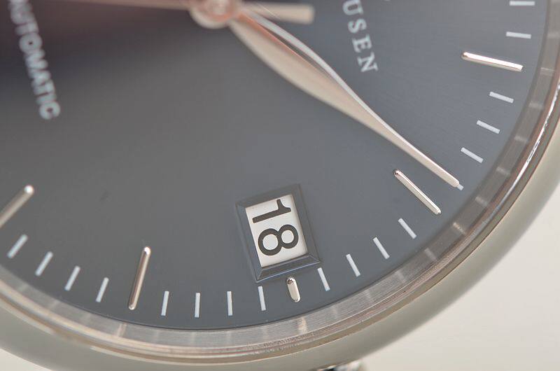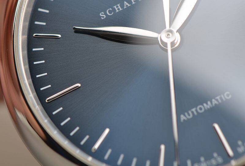 精钢表壳及表扣,后配全新黑色鳄鱼皮表带。蓝宝石水晶镜面,立体深蓝色拉丝表盘,杨柳指针,3点位日历显示功能。口径34MM*8.2MM。防水30M。