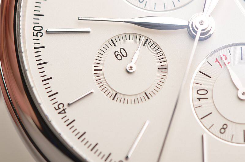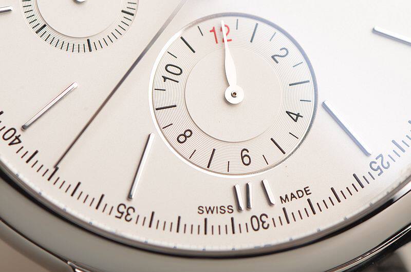 精钢表壳及表扣,后配全新黑色鳄鱼皮表带。蓝宝石水晶镜面,立体白色计时表盘,3点位星期日历视窗,优雅的杨柳指针。12点位30分钟计时,9点位独立小秒针,6点位12小时计时。口径42MM*13.5MM。防水30M。