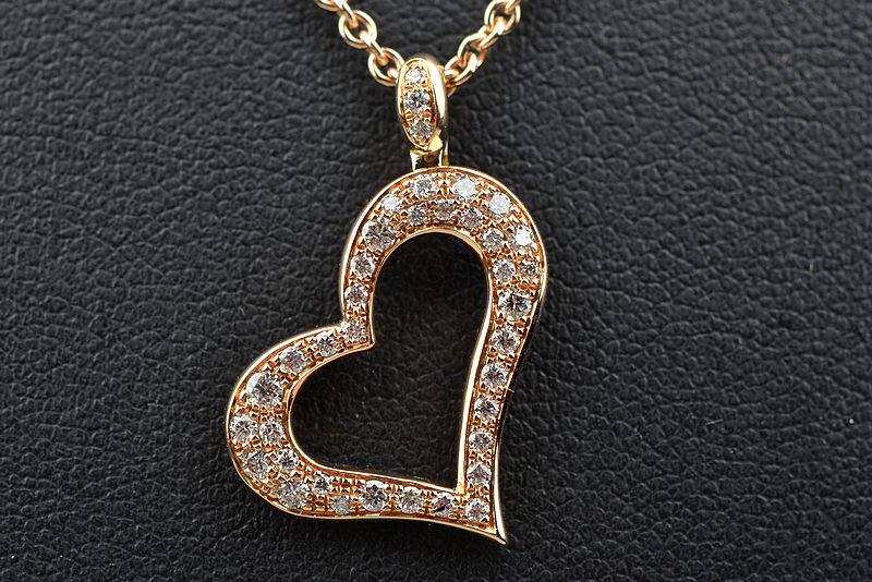 心形吊坠原厂镶嵌38颗顶级天然圆形美钻(约0.35克拉),吊坠尺寸:19MM*14.8MM。项链长度:42CM。
